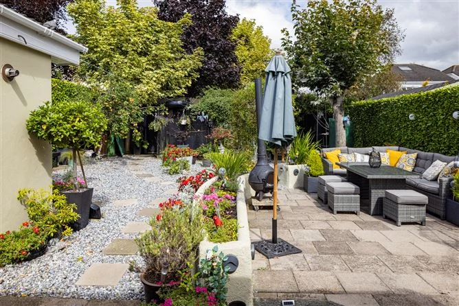 Externally, there is a large walled garden to the front, surrounded by a cobble lock driveway with pedestrian side entrance. The private rear garden features a large concrete-built shed and is finished with a stone and tile patio area. The concrete shed is wired for electricity and plumbed for washing machine/dryer.