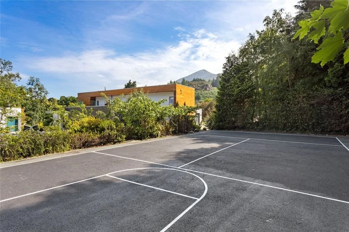 Outside, the house sits on an acre of mature grounds, which blend beautifully into the surrounding landscape. There is also a large patio, as well as a hard tennis court. Click through our gallery above for the full tour of this home.