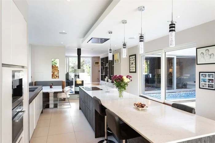 Inside, no expense has been spared, with details like Versace tiles, bespoke fitted furniture and solid wood floors throughout the property.