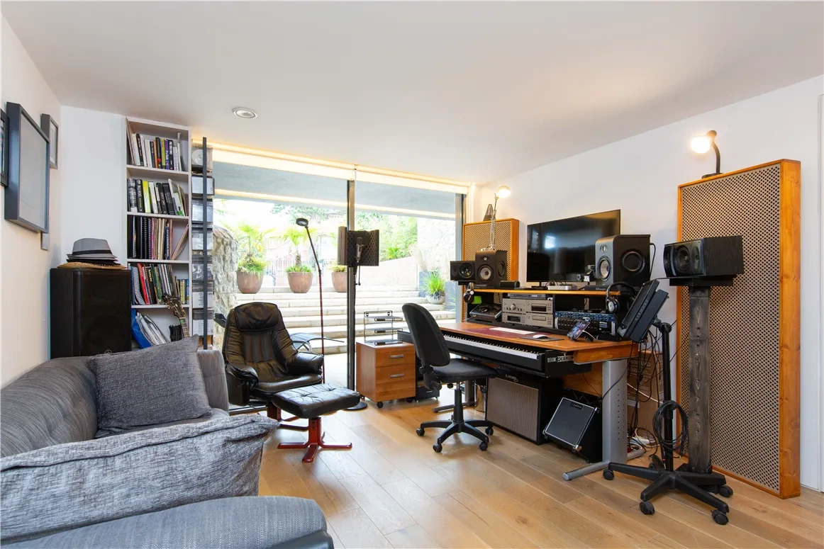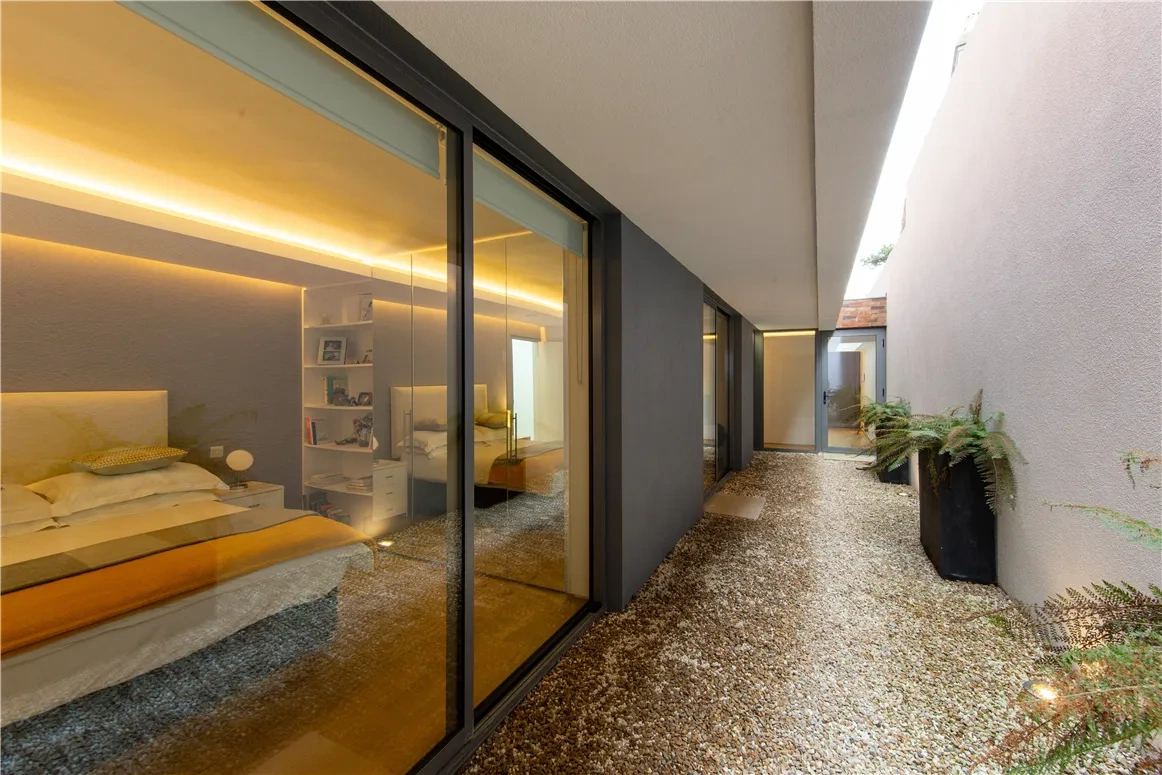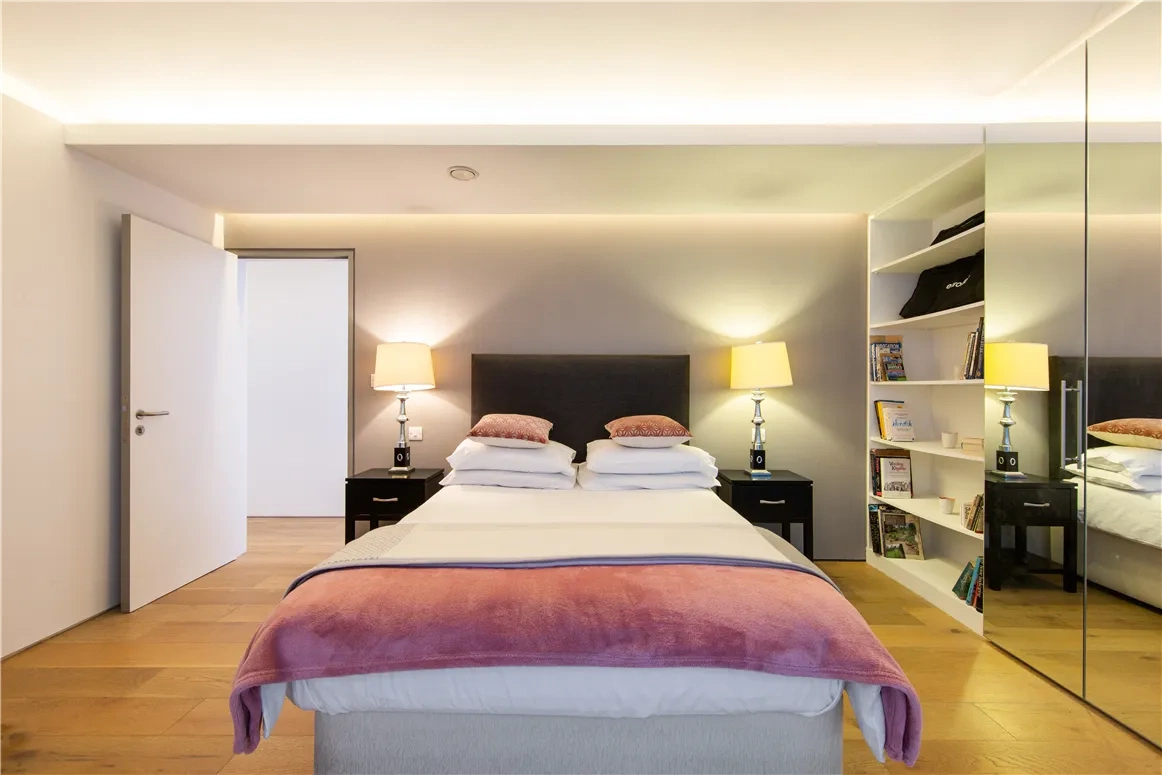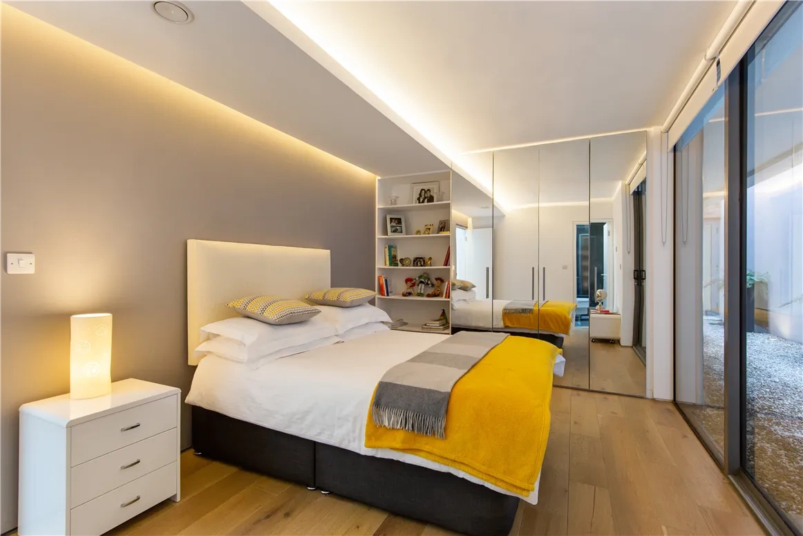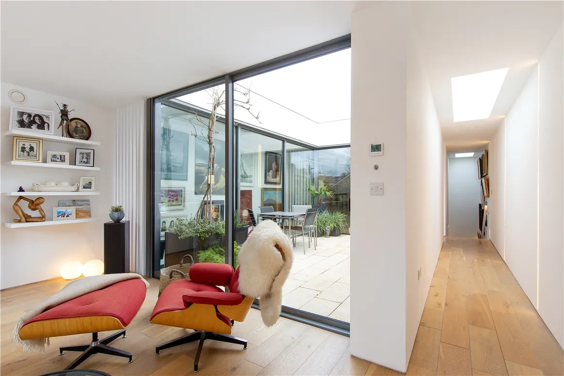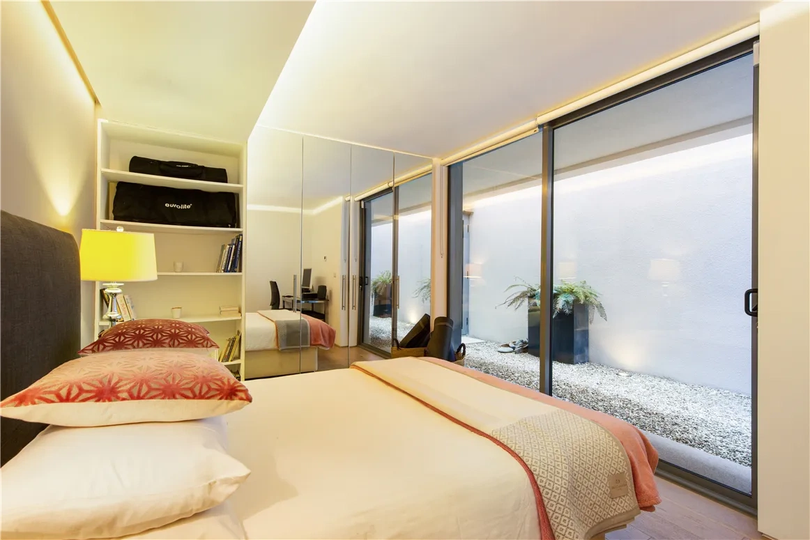 The four bedrooms are located on the ground floor, two of which are ensuite, and all have built-in storage. Three of them open up to a serene courtyard space, a wonderful link to the outdoors.