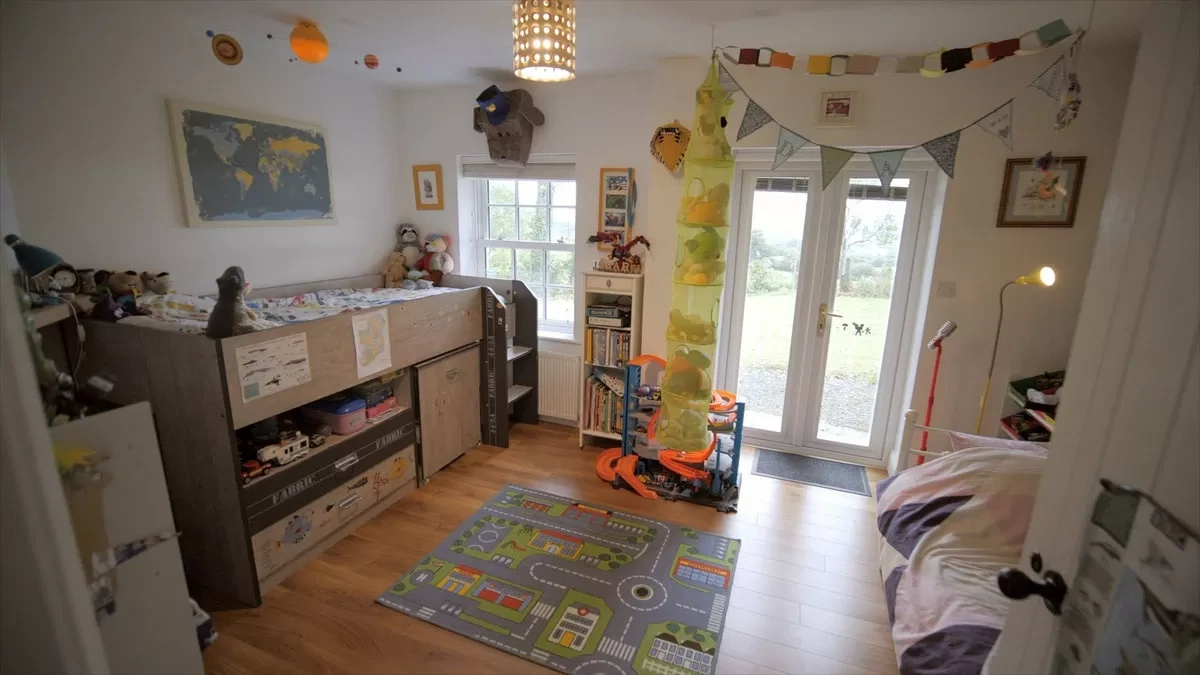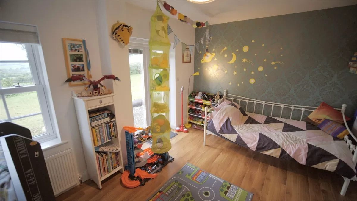 To the left of the entrance hall is a large room in the extension with its own door onto the garden. This is currently being used as a children’s bedroom/playroom but could easily function as something else.