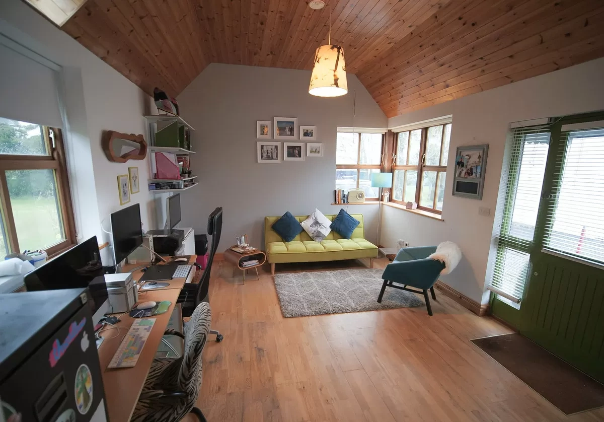 This cottage for sale in the rolling Sligo hills has been thoughtfully renovated and extended to create a three-bedroom house, as well as the dream working from home scenario: A spacious, self-contained workspace.