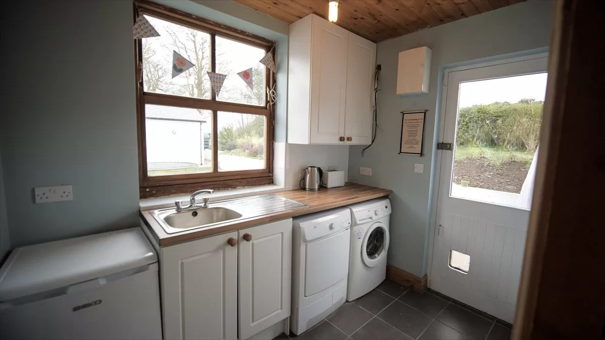 In the garden has a gravelled drive and lawn area, as well as steps up to a wooden treehouse and swing. There’s also a large area along the main road where a second property could be built, subject to planning.