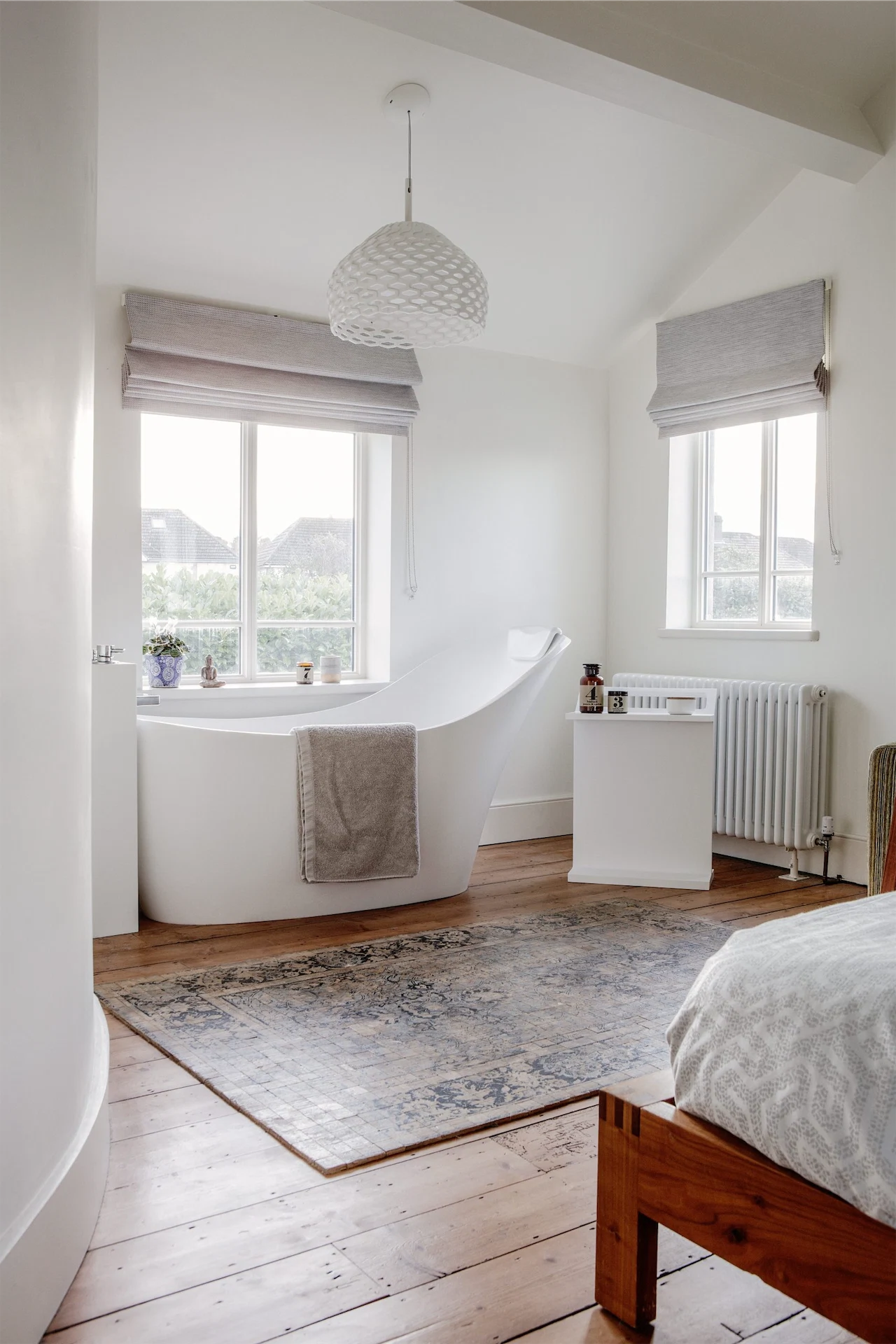 Melding the streamlined style of Scandinavia with modern comforts requires good planning, taking risks and plenty of creativity, both of which Lynne and Gillian have in spades. A potential countertop made of formica with a plywood edge was the only aspect of the interior where they disagreed, eventually opting for a poured concrete one. That, and the bath in the bedroom. “I travel a lot for work and always loved the idea of having a bath in my bedroom. Gillian wasn’t sure at first but soon came around to it.”