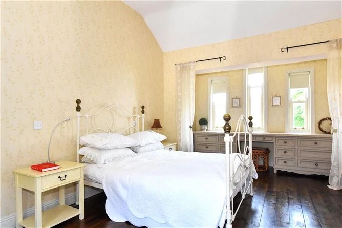 Upstairs, the residence offers four superb bedrooms – two en-suite – as well as the main family bathroom. All rooms are spacious and bright with high vaulted ceilings, fireplace framing and solid oak flooring.