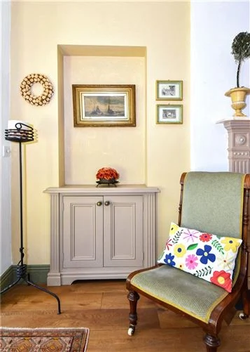 The utility is adjacent, with built-in solid oak cupboards offering plenty of storage. Leading from this area is a self-contained space with its own modern en-suite and private entrance that offers use for a variety of options including a downstairs bedroom, home office or exercise room. To the front of the home is a small snug reception lounge with a Victorian fireplace.