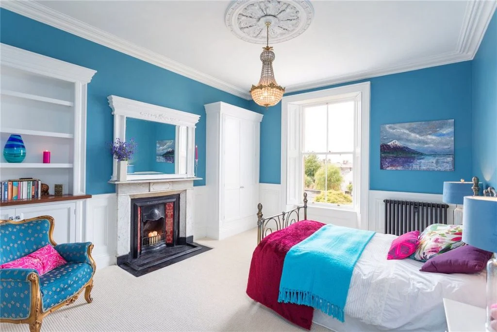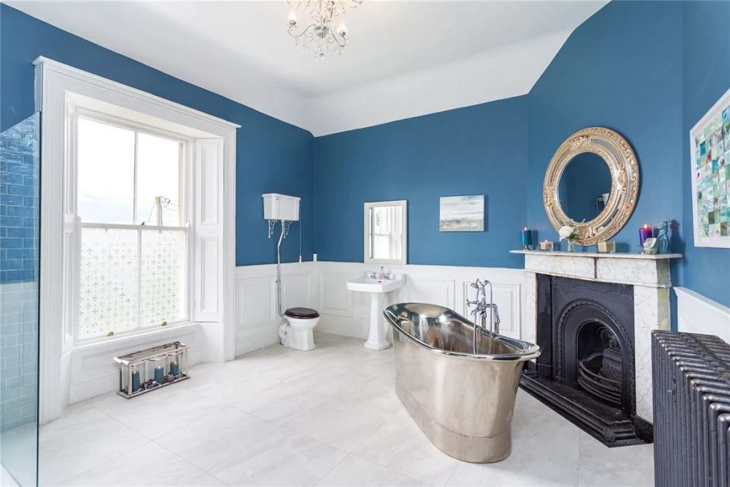 On the second floor of the house are the first two of five bedrooms including the largest, which has its own bay and a fireplace, as well as a wall of bespoke wardrobes. In the return is a very large family bathroom with a luxurious tub. On the top floor are three more bedrooms that share a tidy shower room.