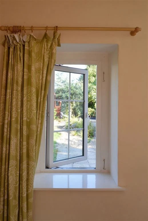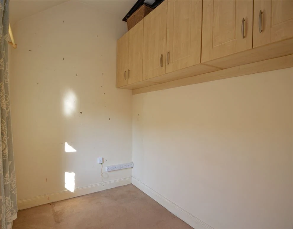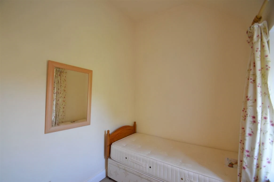 The fully fitted kitchen is all cream in colouring, and gives off a cheerful, energising feel. There’s a free-standing electric hob and double oven, a fridge/freezer and a washer/dryer along with ample cabinetry and storage space.
