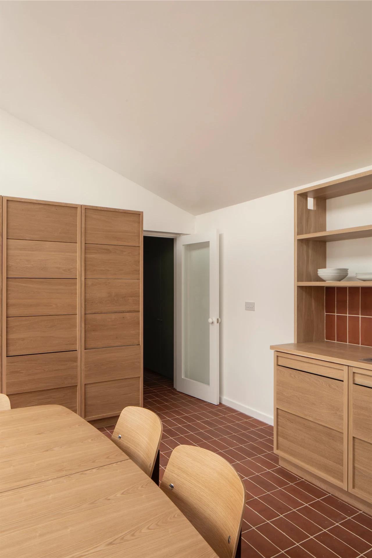 Key to this pared-back palette was finding the right materials, and Jack says that while this was tricky, the work has definitely paid off. “I am happy with how the quarry tiles turned out, it took a lot of work meeting with the contractor, laying the tiles out on site and drawing the pattern on the floor.”