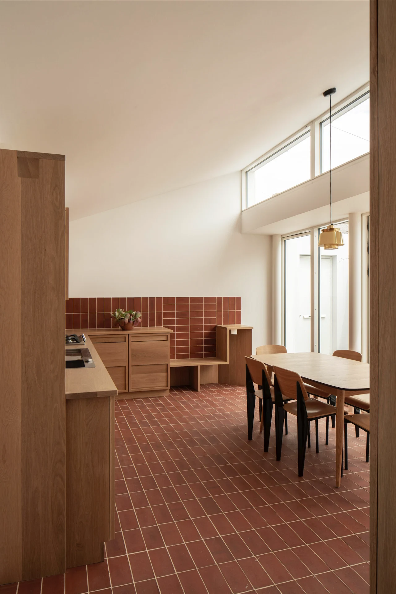 One of the most notable features of the finished space is the simple yet striking palette of materials – brick tiles and oak joinery. This, Jack explains, was inspired by the home’s location.