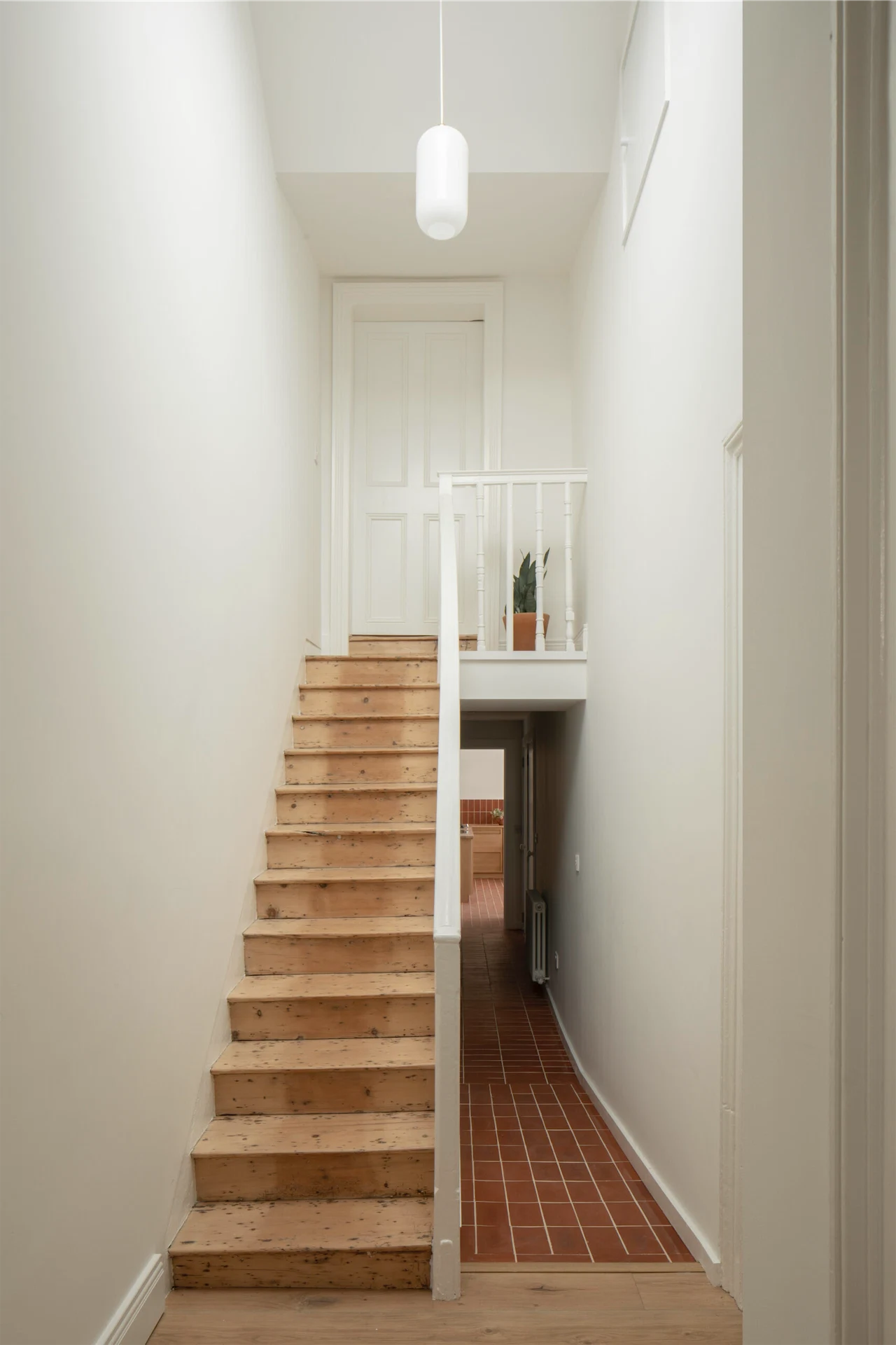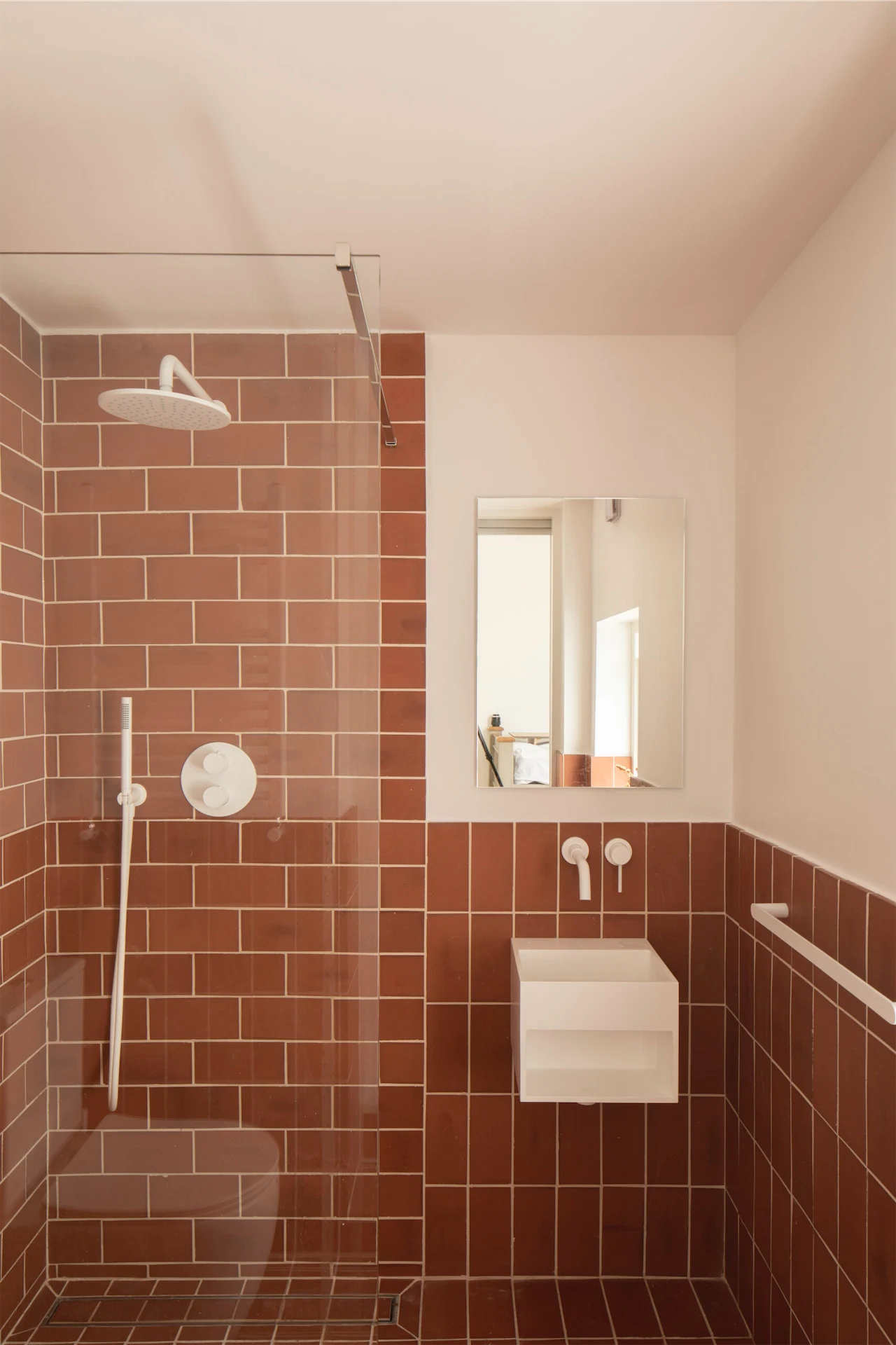 The brick runs through to the bathroom, creating a sense of continuity, while the other rooms in the house have been refreshed with the same simple approach.