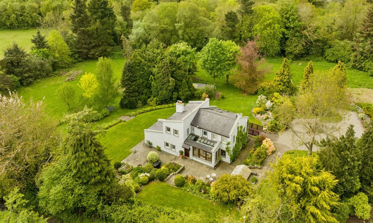 Located on Drummin Lane in Delgany, Co Wicklow, Stoney Springs is a bespoke beautiful family home surrounded by lush greenery.