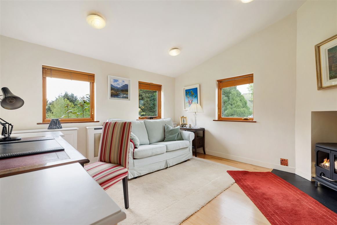 The utility room and extensive wooden storage cupboards in the hallway cover all practicalities. A recently refurbished downstairs bathroom and a large fourth bedroom or den complete the accommodation on this level.