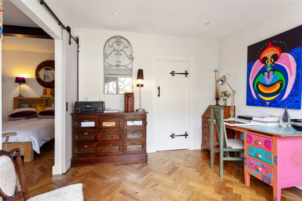 At the end of the garden is the ‘Barn Suite’, an additional space that the current owners use as a home office but could be put to many different uses, as it also has a bedroom with an ensuite. Through this space there is also access to a communal residents’ garden.