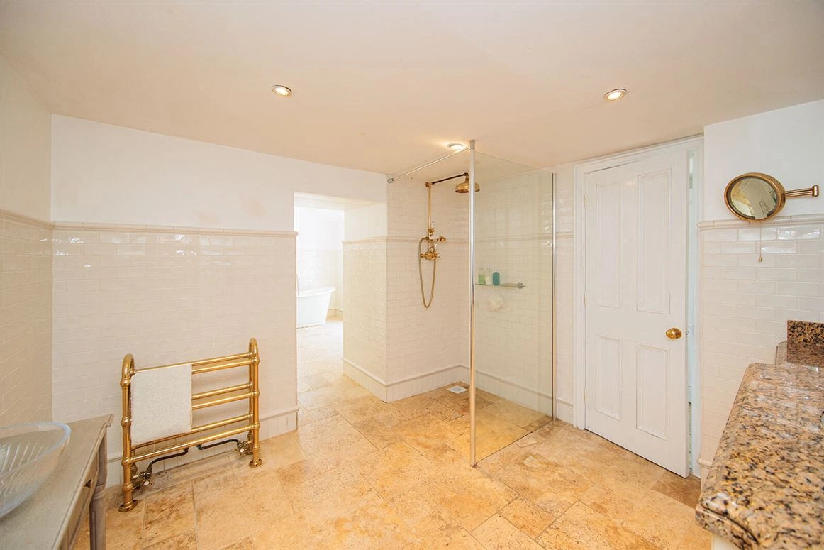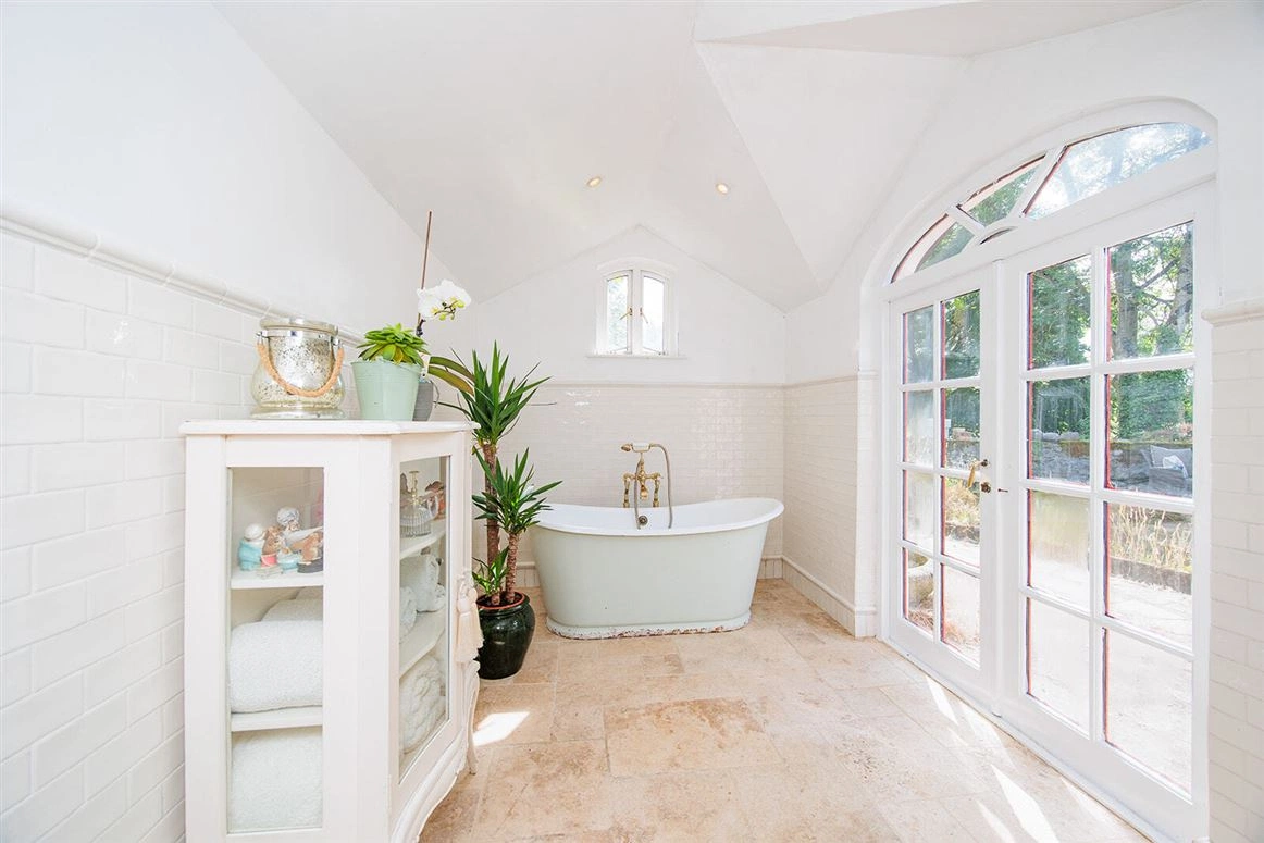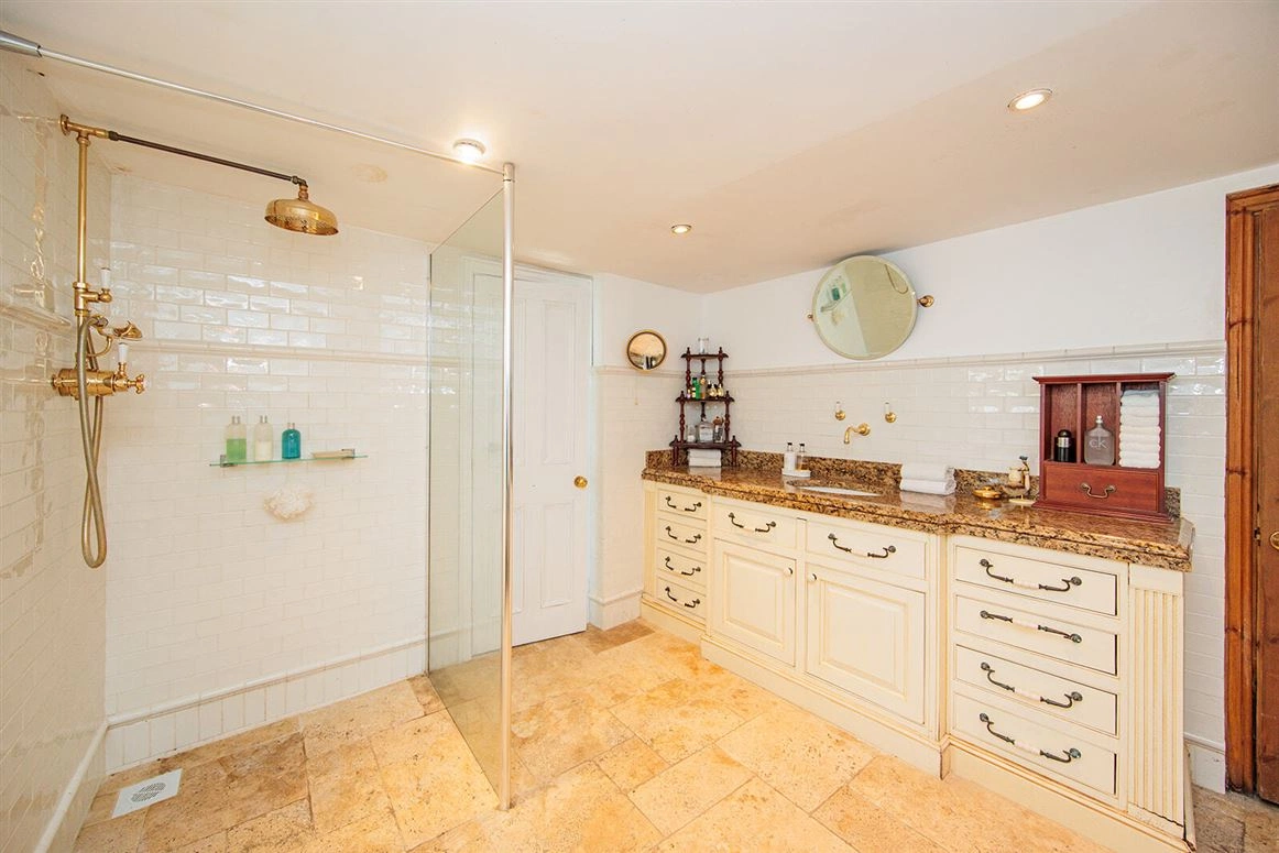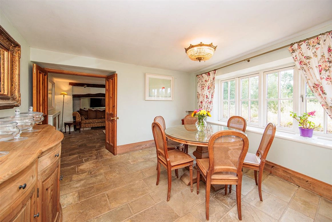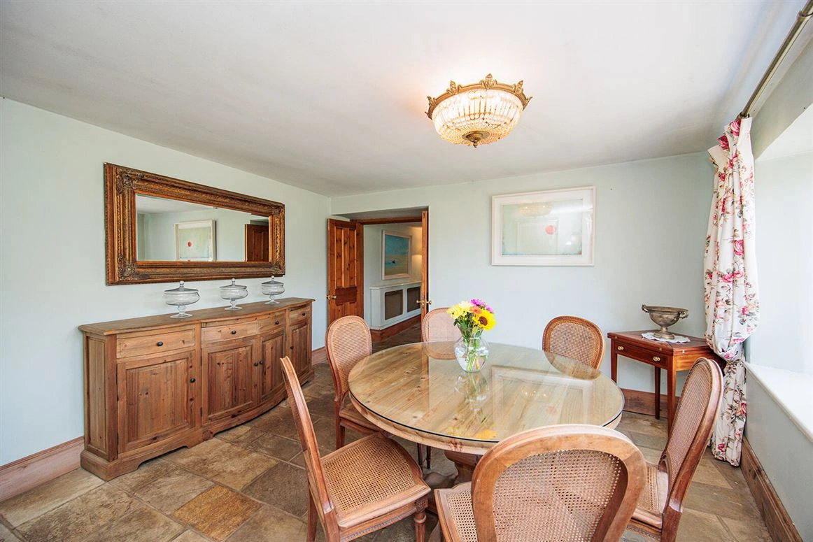 In the dining room, there is a large south-facing feature picture window to the front of the property. Further inside is the kitchen. Handmade ivory coloured units provide storage, complemented by a granite worktop and undermount kitchen sink. A feature wooden half door leads out to the front of the property while there is open plan access to the utility.