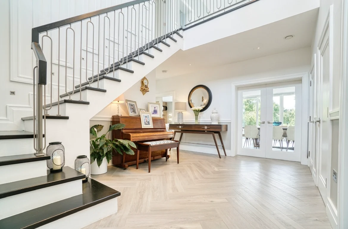 When Margaret Mallon of Power2design first saw this home in Rathfarnham, Dublin, it felt dated due to dark floors, lots of pine, and lots of dividing walls. “It lacked the modern conveniences of a new build, such as open plan spaces, up to date kitchen and cooking facilities and walk-in wardrobes,” she says.