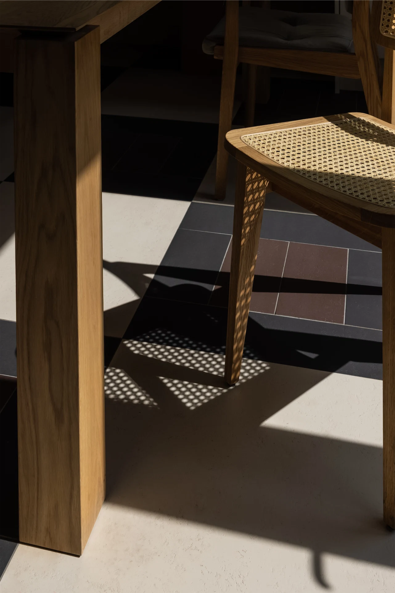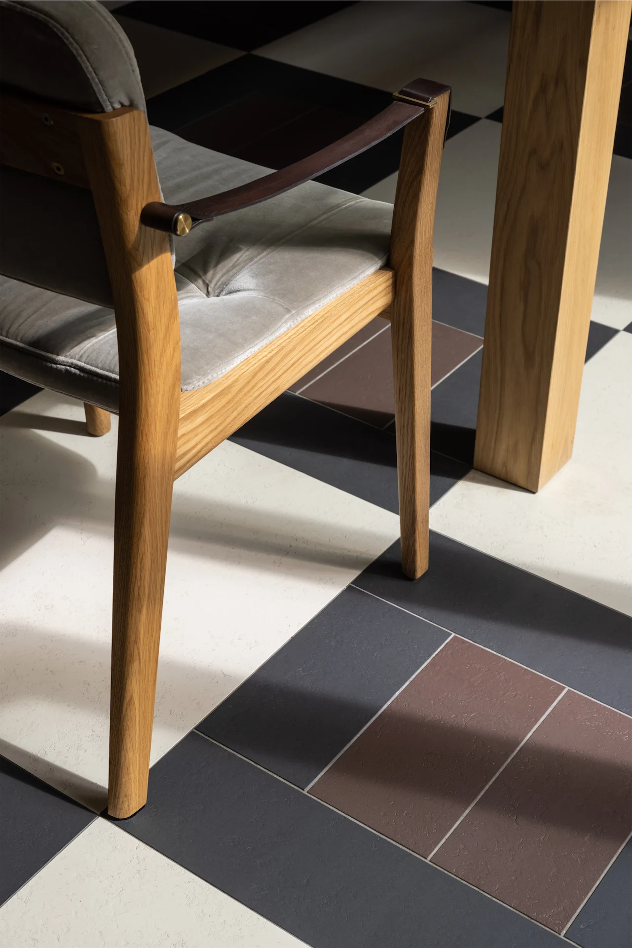 When it came to choosing the materials and colours for this space, they needed to reflect the owners’ desire for warmth. “We chose natural materials such as wood for their tactility and warmth,” Ali explains, “along with an earthy colour palette of dark brown, cream and almost black for the ceramic floor tiles. Velvets and brass were introduced in soft furnishings and lighting to add a sense of luxury to the space.”