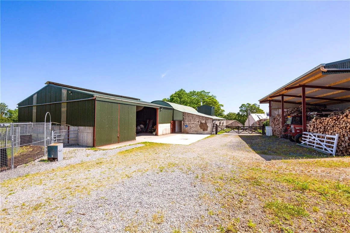 The house has been fully rewired replumbed and insulated, so despite being exempt from a BER rating, it has been rated at C2. A broad patio wraps around the house, creating sheltered seating spot from his to enjoy the garden, which includes an ornamental pond. The 88 acres of this property stretch from rolling lawns into planted forestry, equestrian facilities and fields.