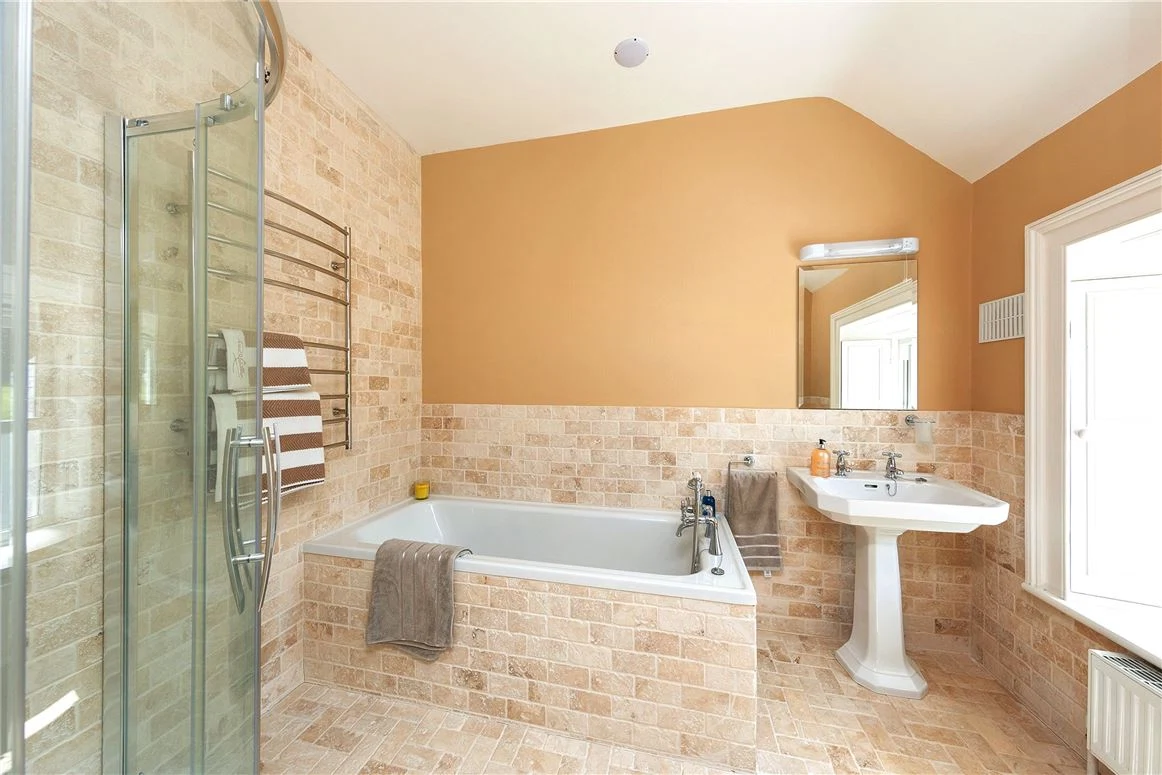 Also off the central hallway is a cosy sitting room and more formal drawing room, both with dual-aspect views to the front and rear of the house. The sitting room also has internal access to the self-contained flat next door. The central staircase here leads to two of the bedrooms. Set into the eaves and both with their own beautifully finished ensuites, these rooms are so spacious they could both be double or even family bedrooms.