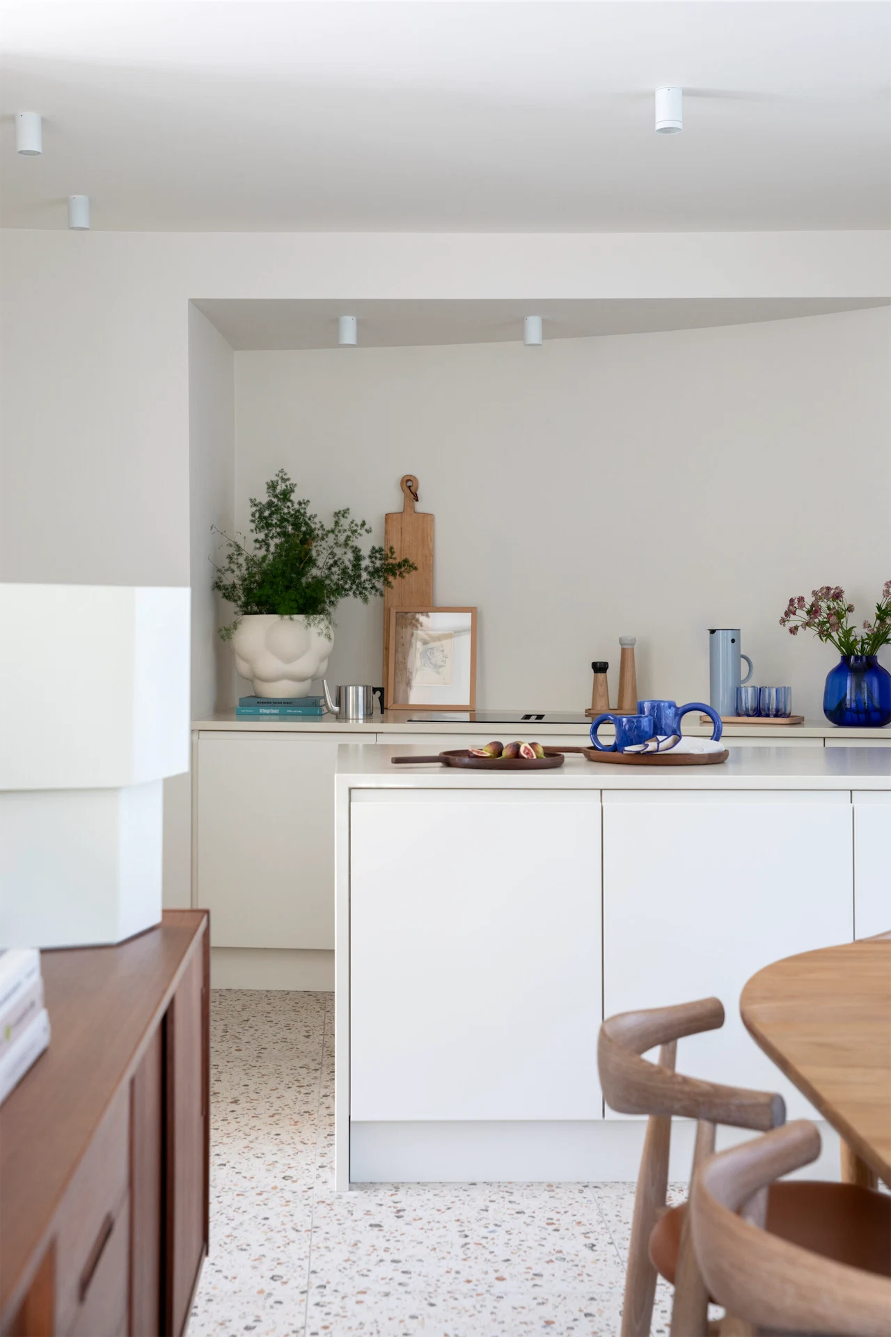 The focus on minimalism was also appealing to Carol, a lover of all aspects of Scandinavian design herself, who notes that the client wanted something “completely new and different” to their first home. “Very often, people struggle to be that extreme in changing their interiors – especially when it’s a space that they’re going to be living in – but the client was adamant and really clear in their brief.” The result is a unique home that feels neat and contemporary – round towers aren’t just for fairytale princesses, it seems.