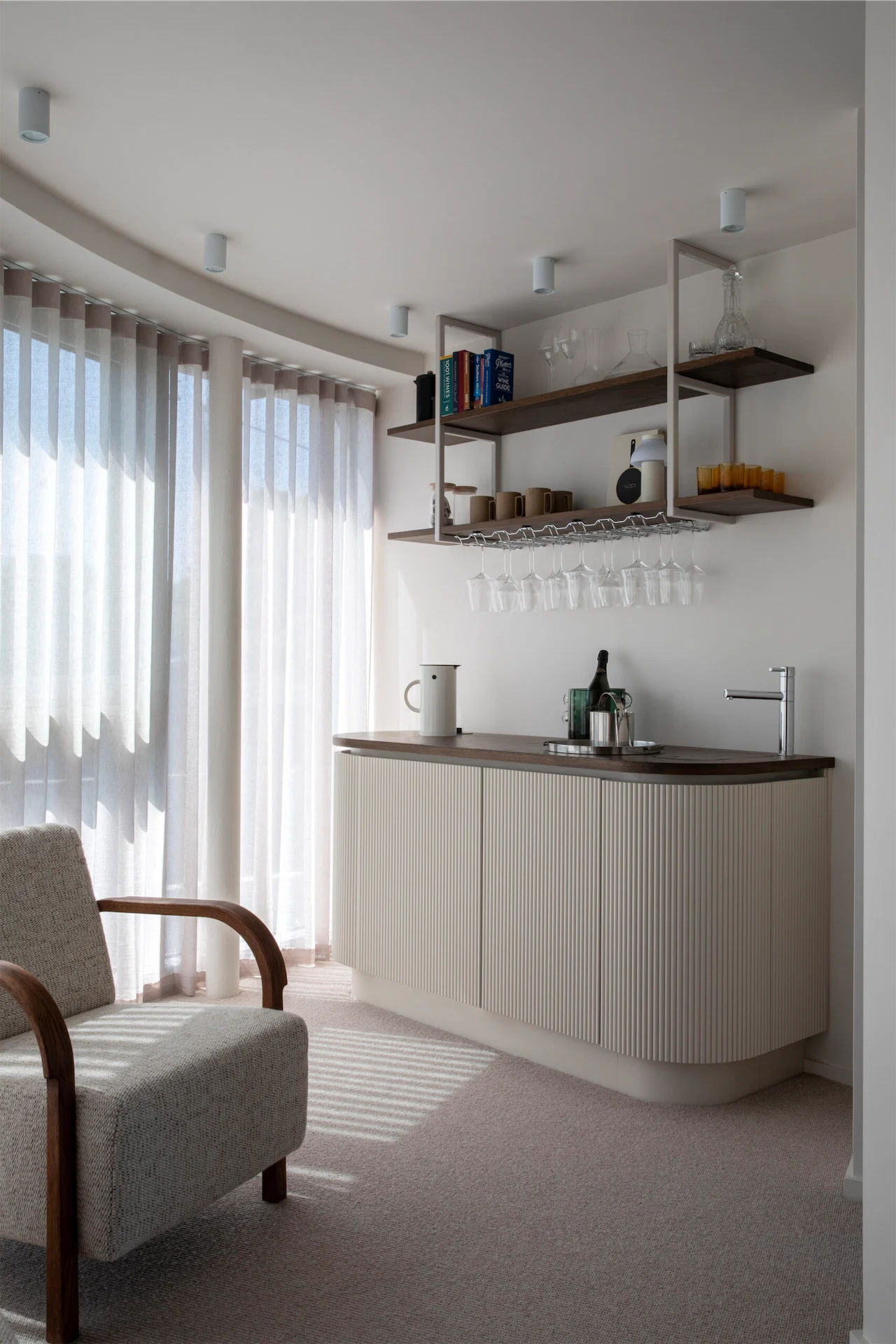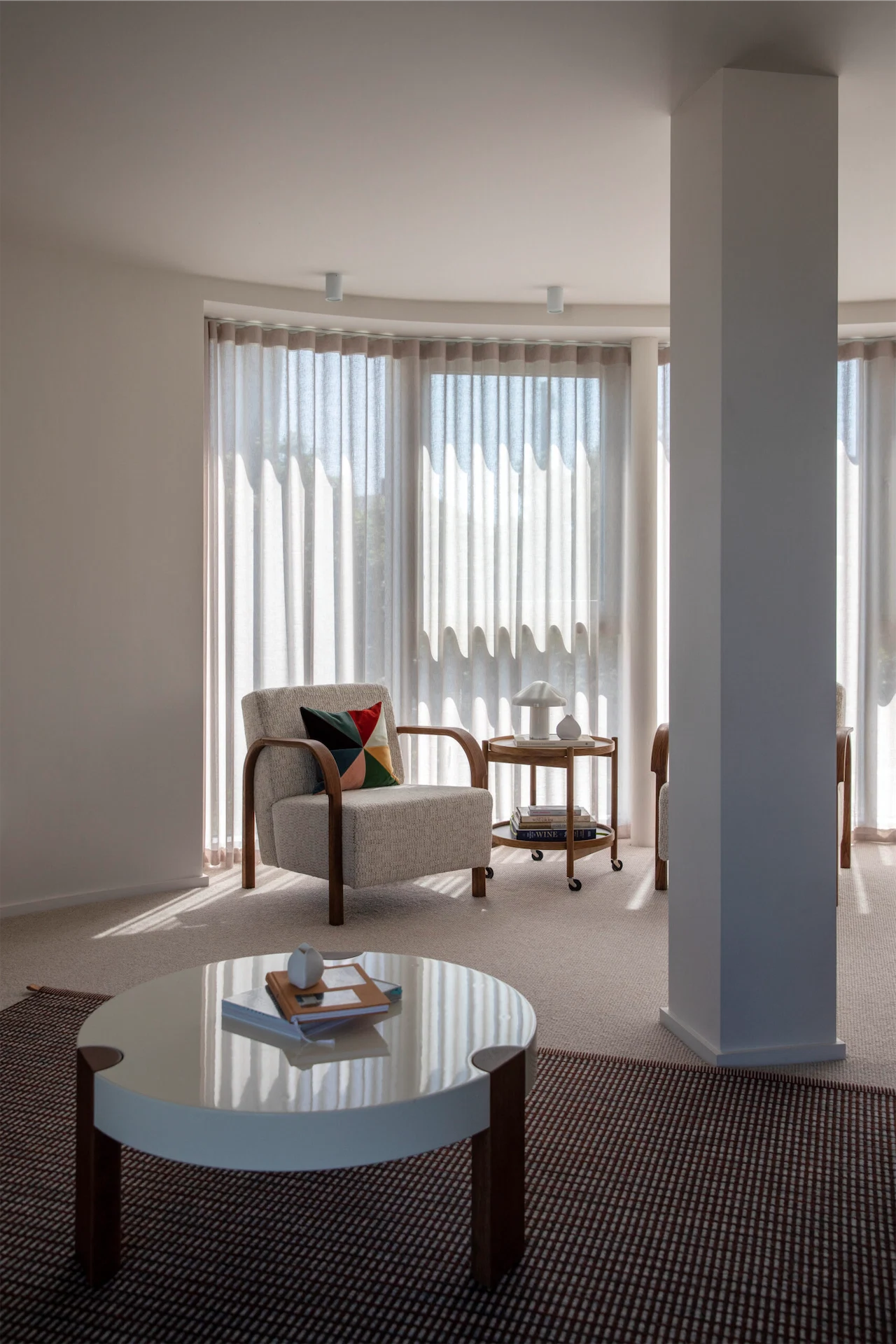 Balancing seclusion and light was another focal point of the design. Floor-to-ceiling windows ensure the space is bright and airy, while carefully chosen window dressings keep prying eyes out.