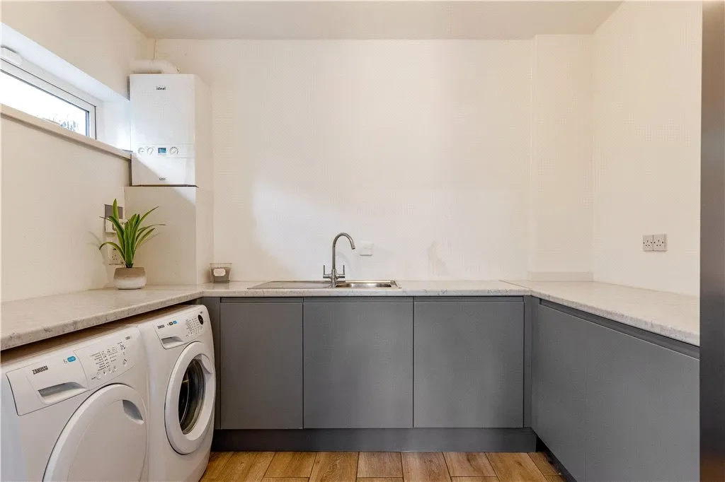 The utility room – which has been plumbed for a washing machine and vented for a dryer – is located just off the kitchen.