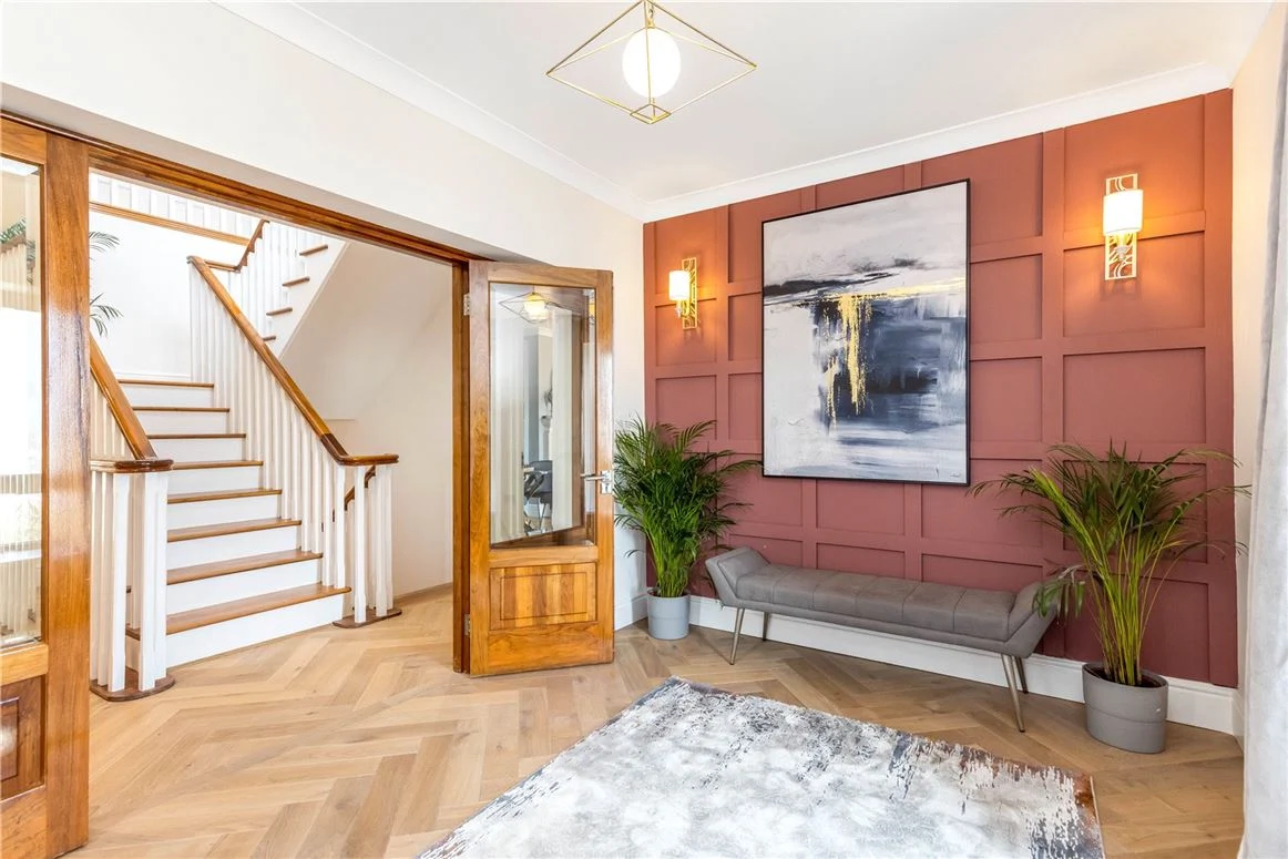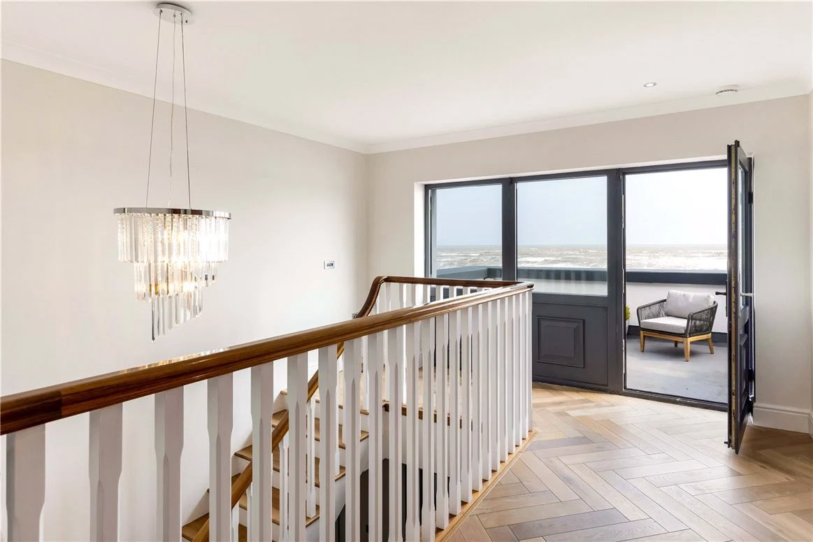 Continuing on to the second floor, the landing is a bright and light filled area, with solid wood parquet flooring, which provides a classic and timeless feel to the space.