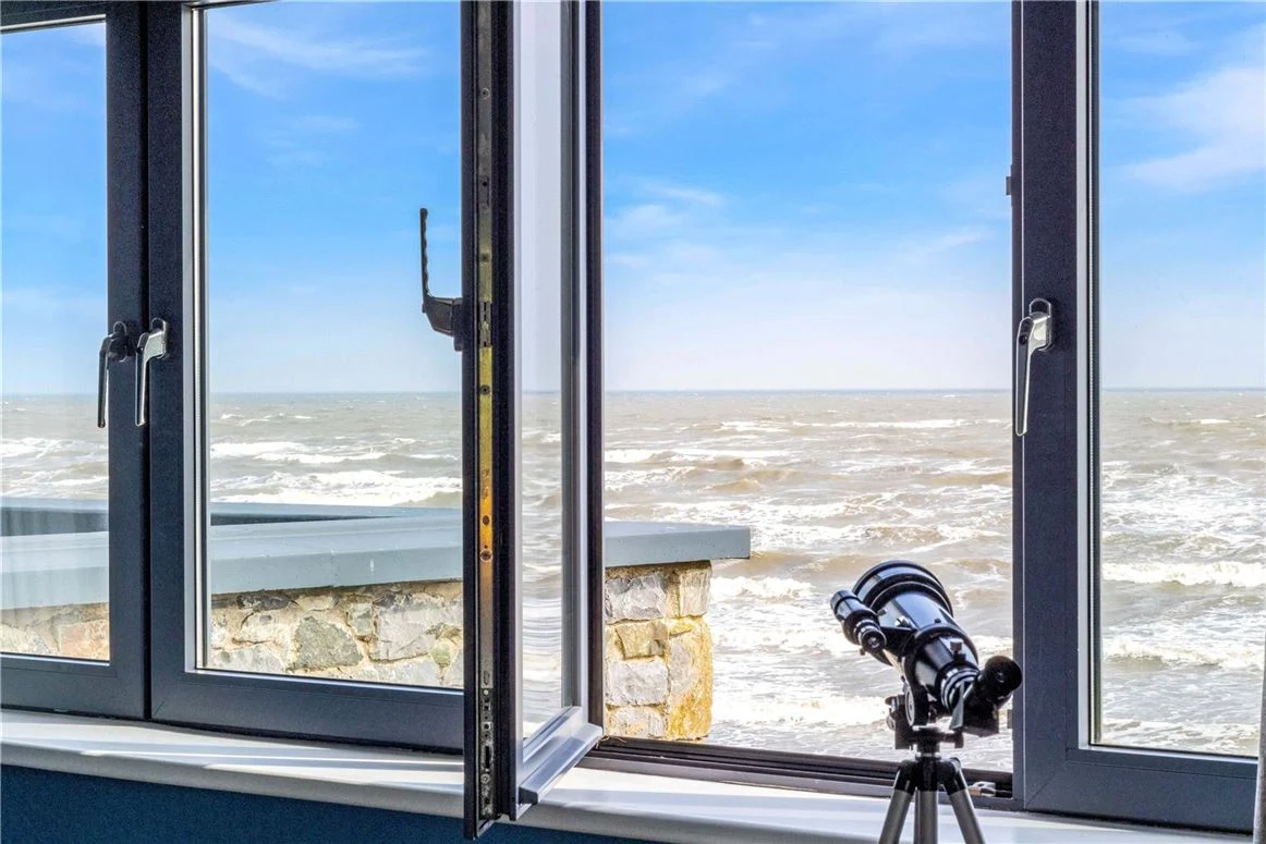 This newly renovated beachfront home boasts panoramic views of the Irish Sea, the Cooley Peninsula, and Rockabill.