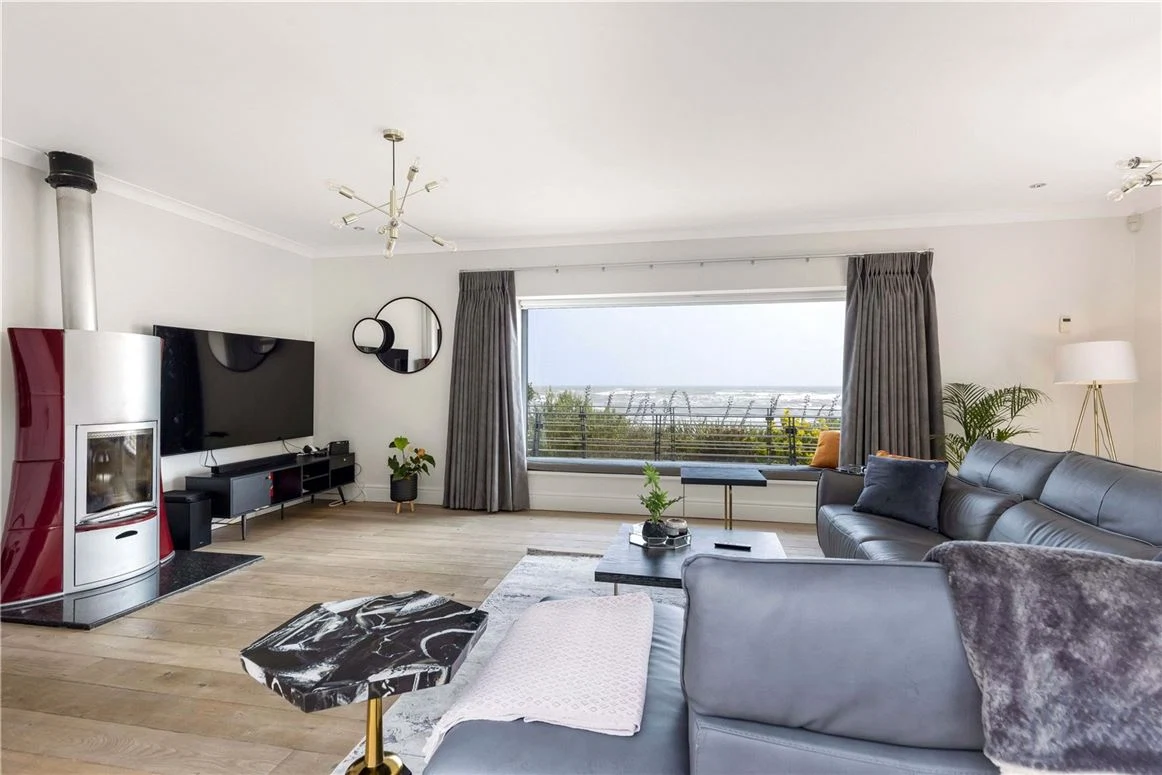 The cosy sitting room is the perfect space to relax and unwind after a long day. With an exquisite stone fireplace and library shelving, the room exudes warmth and comfort, providing a cosy atmosphere, while the breath-taking sea views allow you to take in the beauty of the coastal landscape while enjoying a peaceful evening indoors.