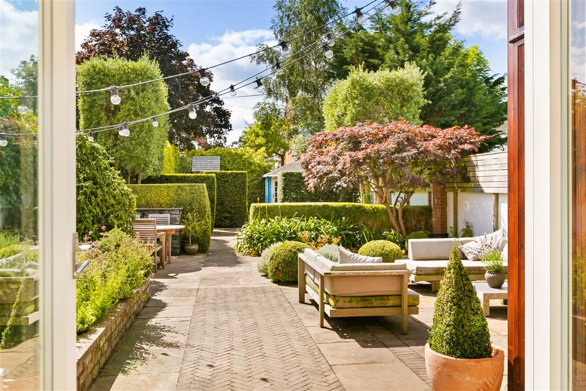 Outside, the split-level back garden is paved with Indian sandstone, and gets early morning and afternoon sun, while a garage provides off-street parking.