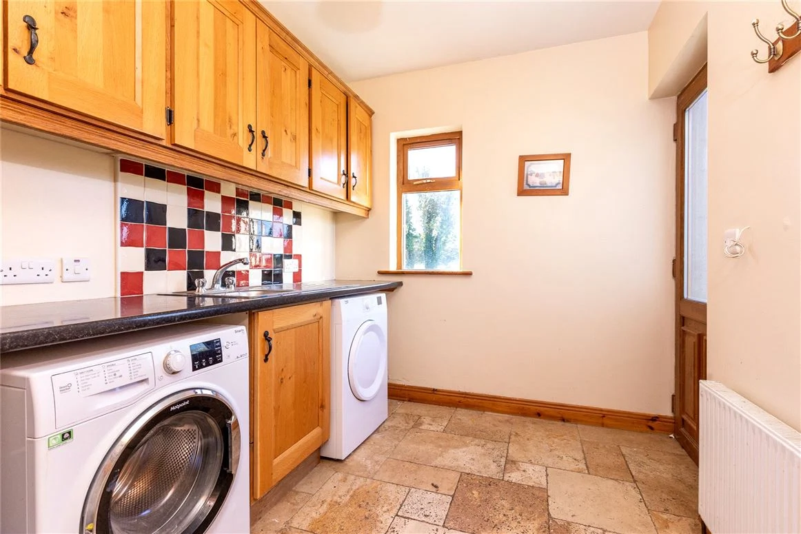 Also on the ground floor, there is a well-sized utility room with units for storage, a sink, and space for a washing machine and tumble dryer. One of the bedrooms is on the ground floor, which the current owners use as a home office.