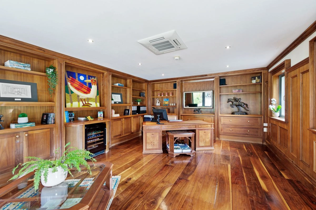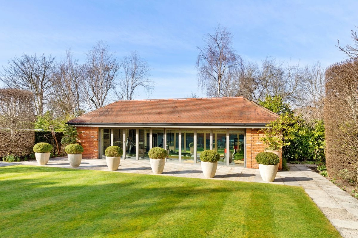 The sale also includes a separate building. Currently being used as a detached home office, it features substantial built-in shelving and storage units with provision for a wall-mounted TV and a Eurocave wine cooler to complement this executive suite. In addition, there is also a separate toilet and small storage room.