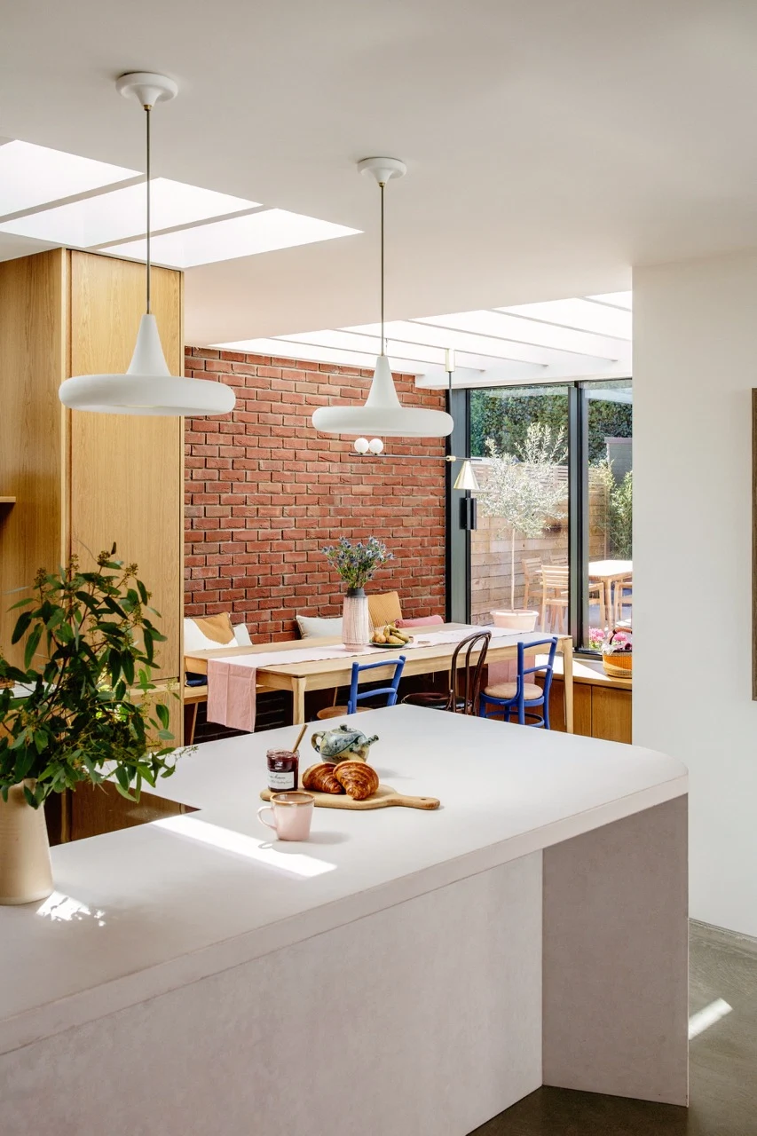 An L-shaped extension with alcoves and a dining nook, a strong connection to the garden and lots of light were among their non-negotiables. Equally, they wanted to push the envelope and try something new.