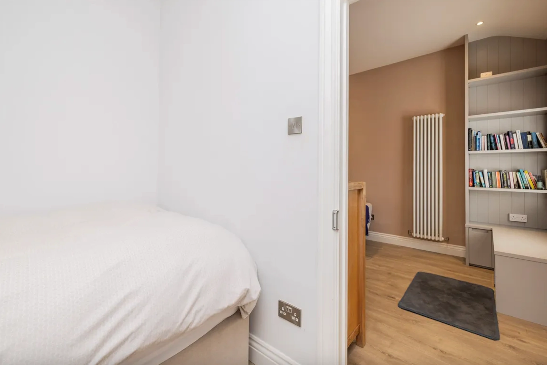 The two bedrooms also have timber flooring, and have been painted in a simple white to help them feel bright.