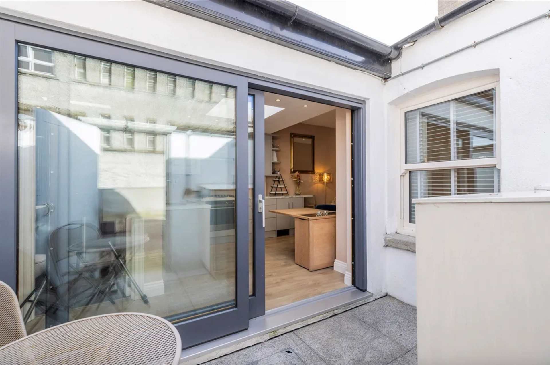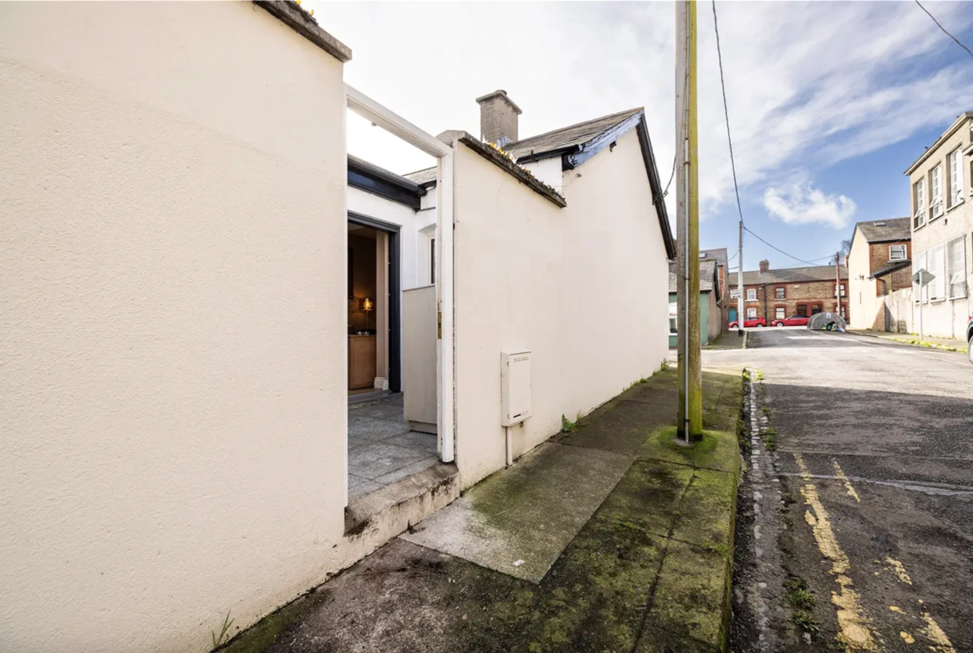 The courtyard is west facing, and opens out onto the street beside the house, providing pedestrian access.