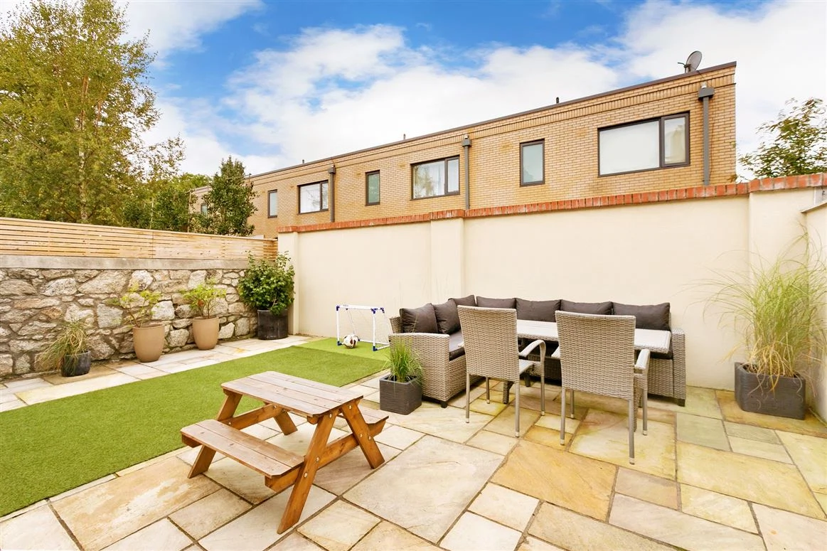 Outside, the back garden is mostly paved in Indian sandstone, with a small area of artificial grass, providing plenty of space for outdoor seating. The front has space for off-street parking for up to four cars.