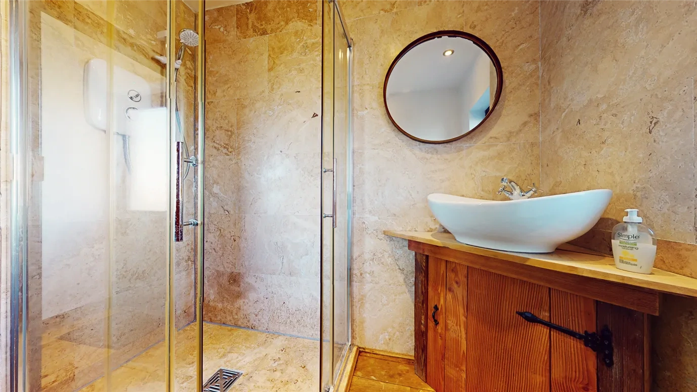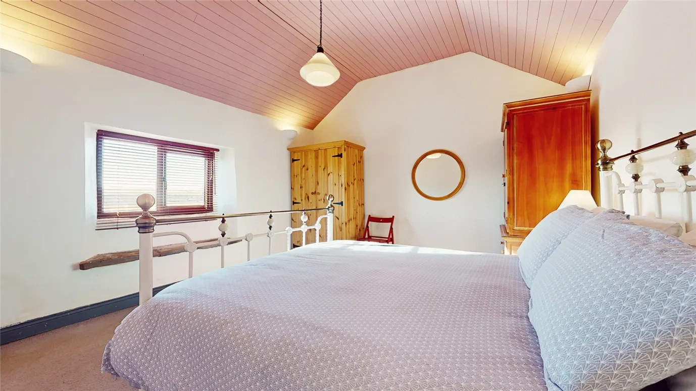 Glass folding doors in the dining space open up to the garden, while off this main room there is a utility, wet room, and a room that could be used either as a fourth bedroom or home office.