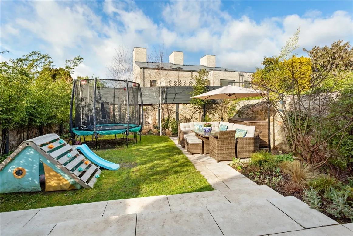 Outside, the walled back garden has a lawn area bordered by mature shrubs, as well as a limestone patio, perfect for outdoor dining, especially given its link to the kitchen.