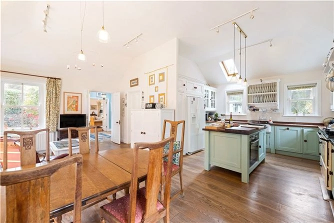 Inside, the property doesn’t disappoint and is bright and spacious thanks to an extensive refurbishment and extension completed in 2002. The front door opens onto a generous entrance hallway with solid oak floor, recessed lighting and a large Velux window.