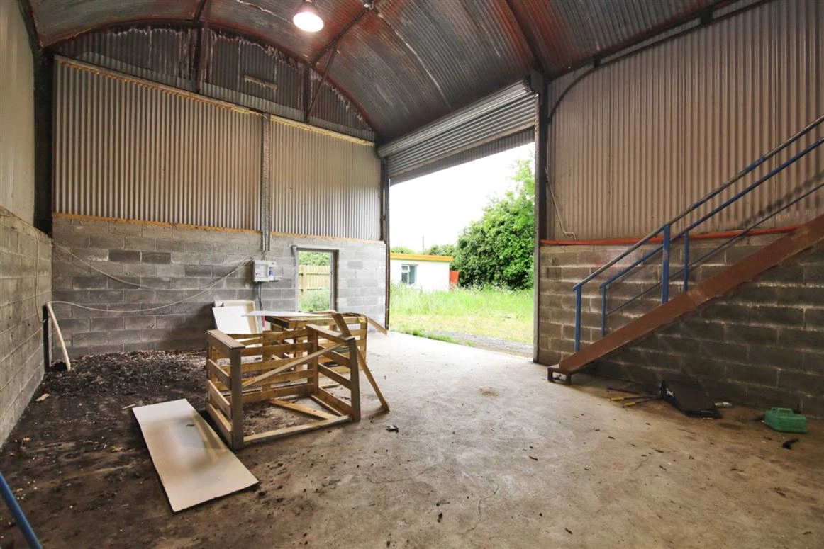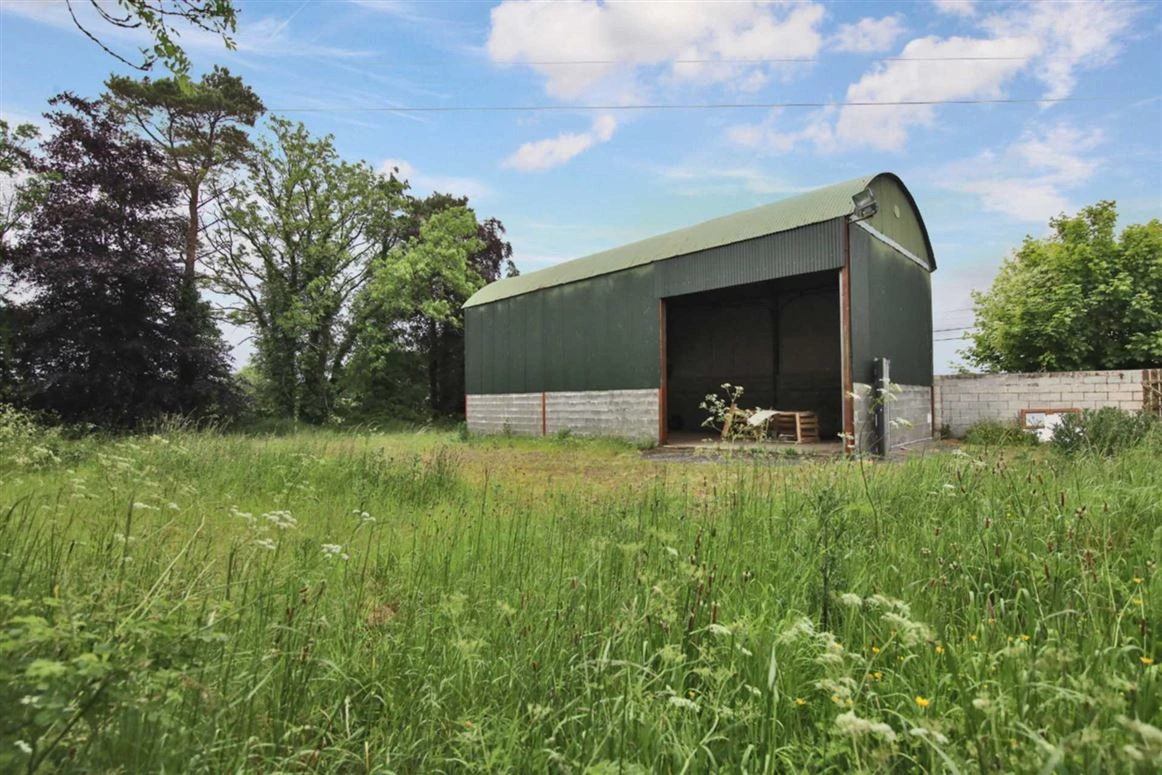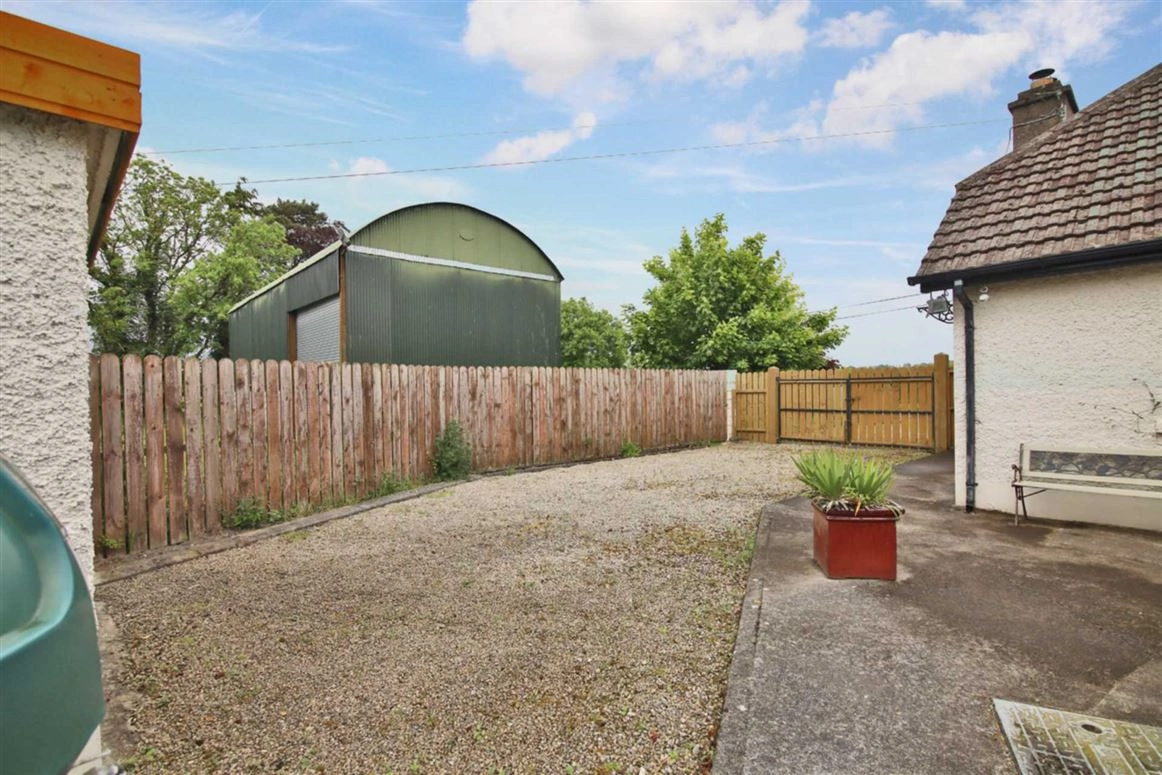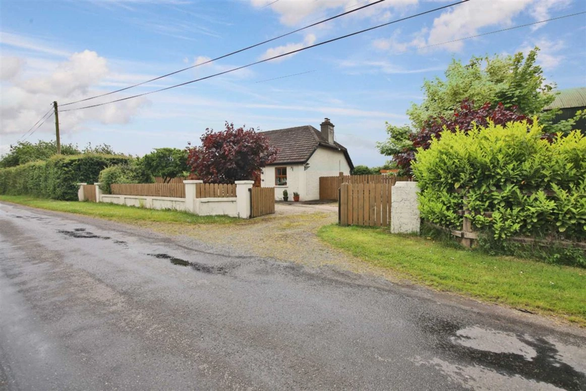 A charming two-bed property tucked away in Athboy, Co Meath, this country cottage is set on a generous plot of land and comes with a large garden and two-storey three-bay shed with electricity supply.