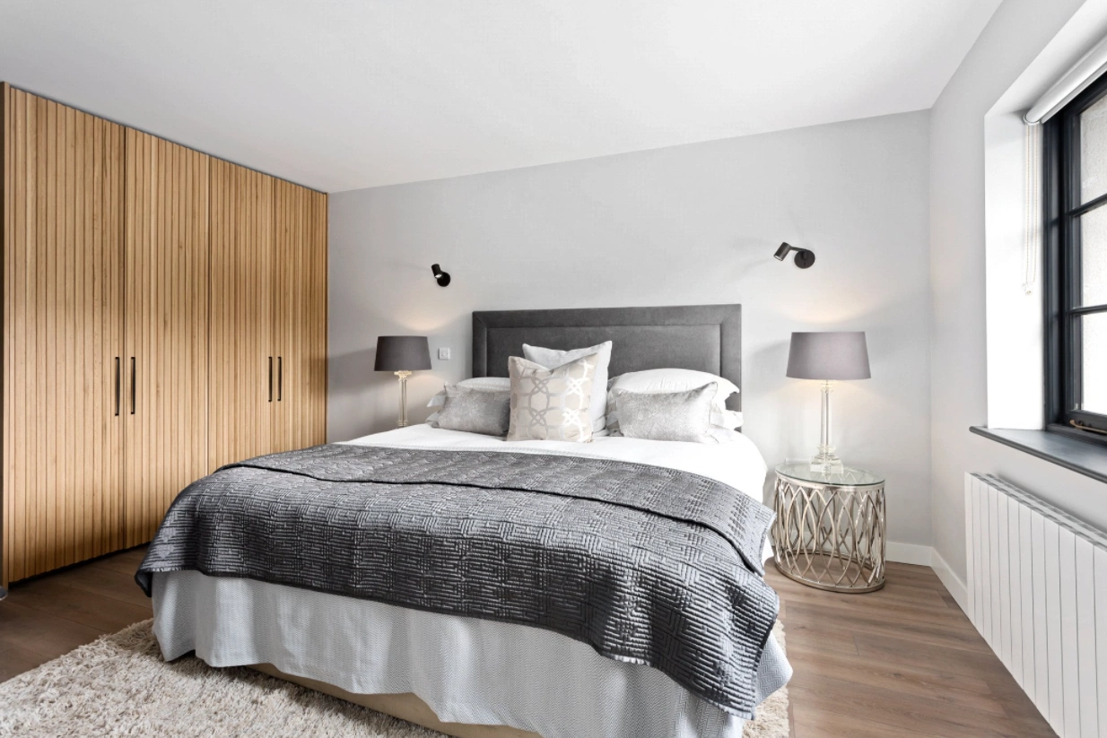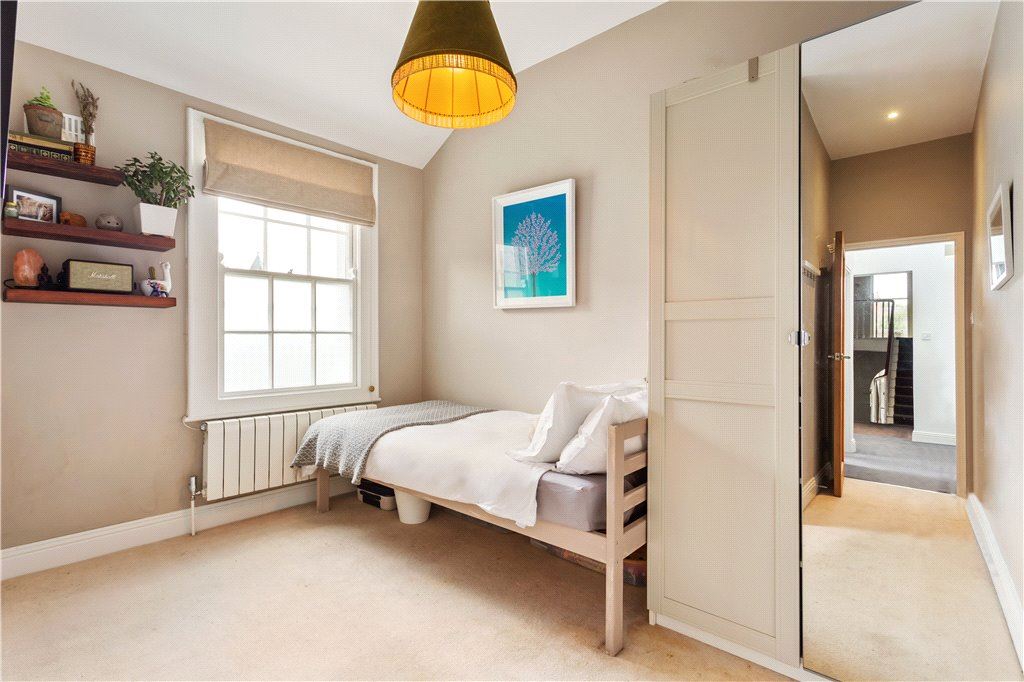 The second bedroom has fitted wardrobes as well as sash windows, and overlooks the rear garden, while there are two further single bedrooms and a family bathroom.