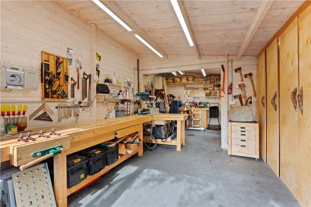 At the back of the garden is a freestanding workshop with French doors and its own electricity supply. It is currently used as a workshop, and has plenty of storage, but has the potential for other uses. There is a gate behind this workshop which provides car access to the rear of the house.