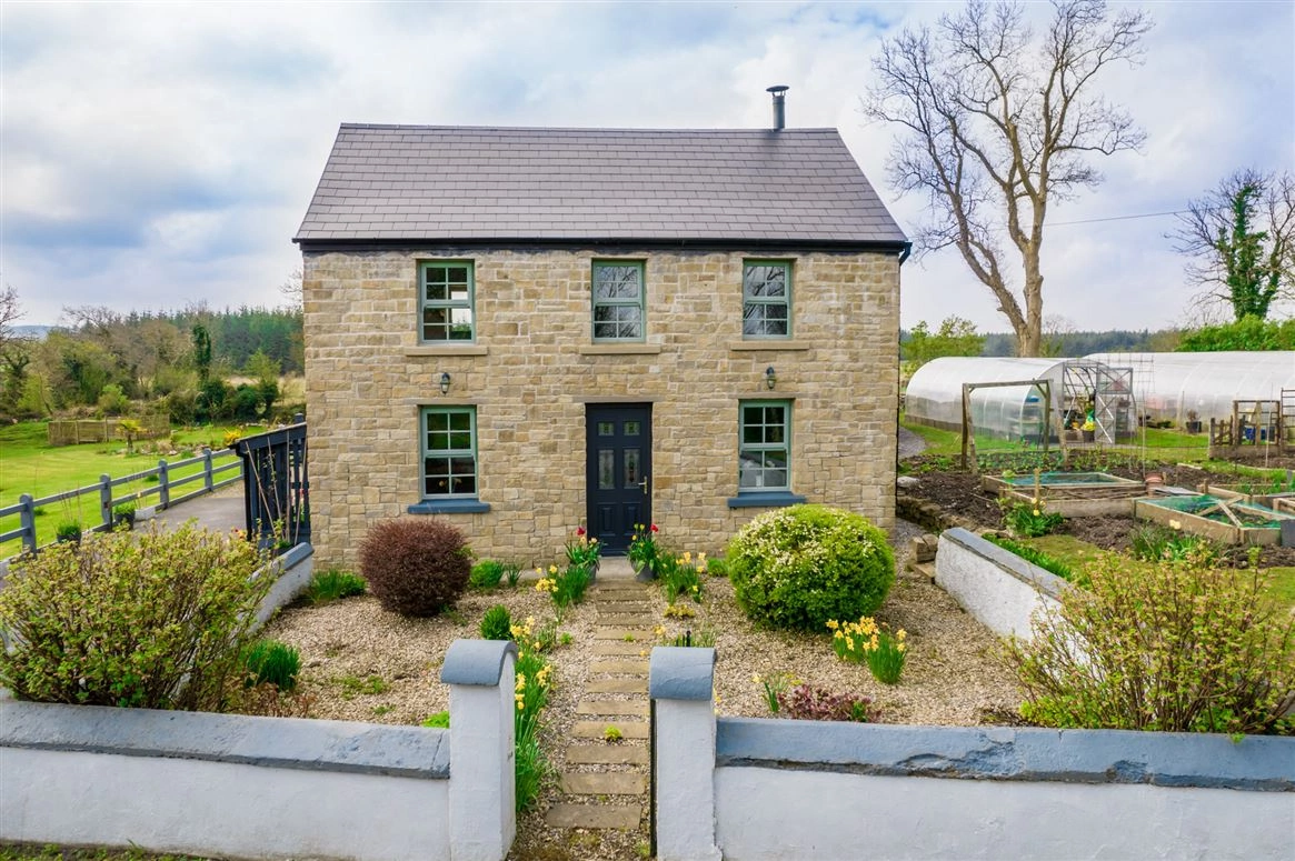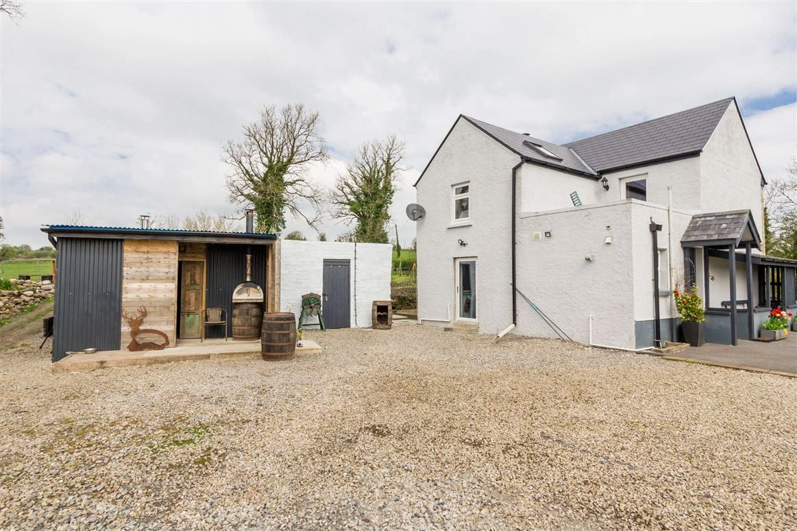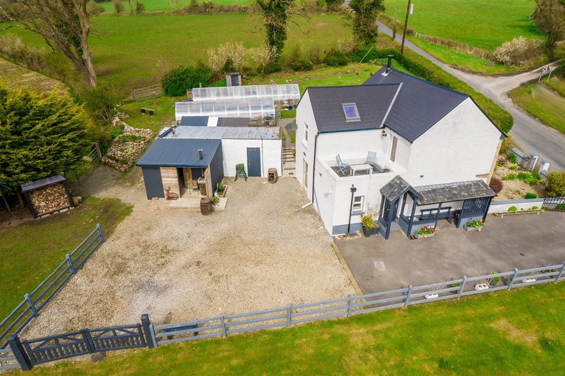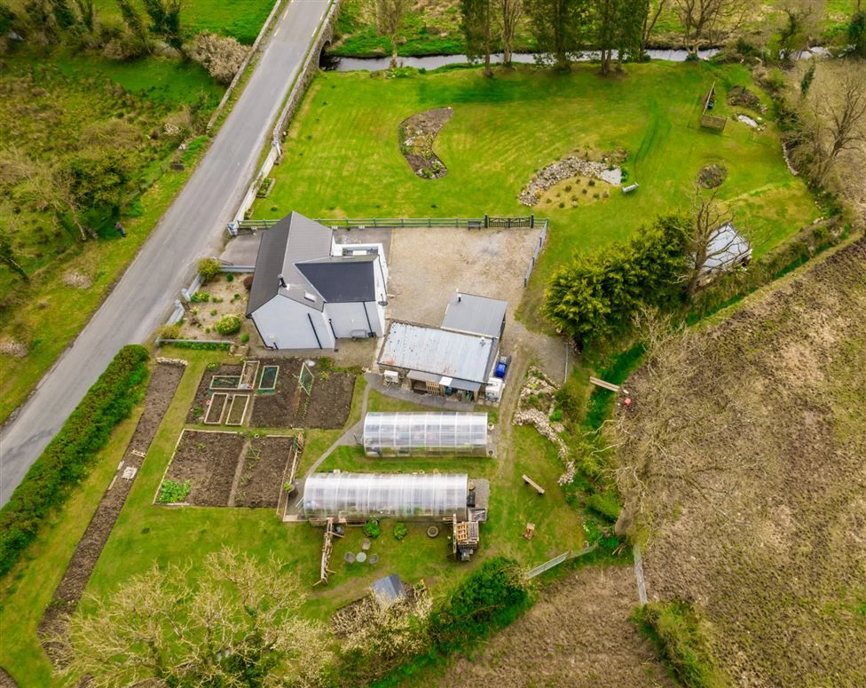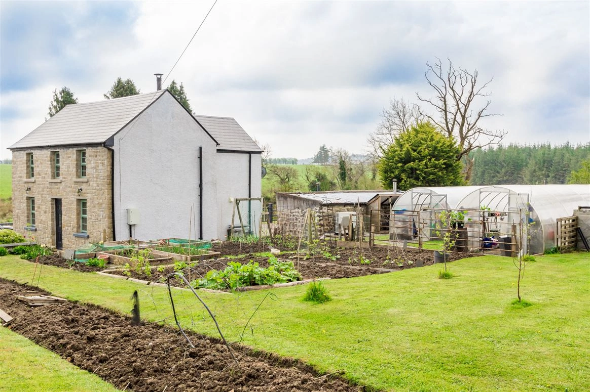 This property comprises a two-storey, three-bed residence with a large main shed which contains a wood-burning stove and has both electricity and running water. The grounds also feature two large polytunnels with electricity and wifi and a water and a garden shed. Inside, the accommodation features a ground-floor living/dining room, a kitchen, one bedroom and the family bathroom. Two further bedrooms can be found on the first floor along with a large balcony, a bathroom and a large landing with a comfortable sitting/reading area.