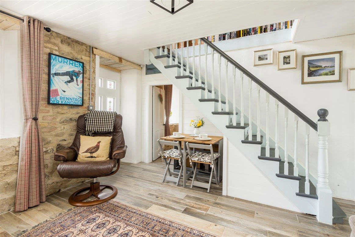 Upstairs, the landing has been carpeted for cosiness and is privy to some of the best views of the Suck Valley Way below. Designed as a reading nook, it’s the perfect place to curl up with a book in the evenings.