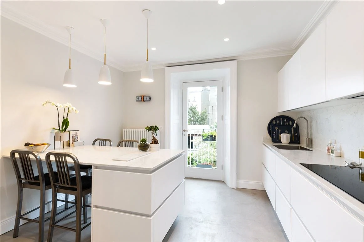 This recently renovated home mixes its period details with stylish, modern touches, and looks out onto a green park square.