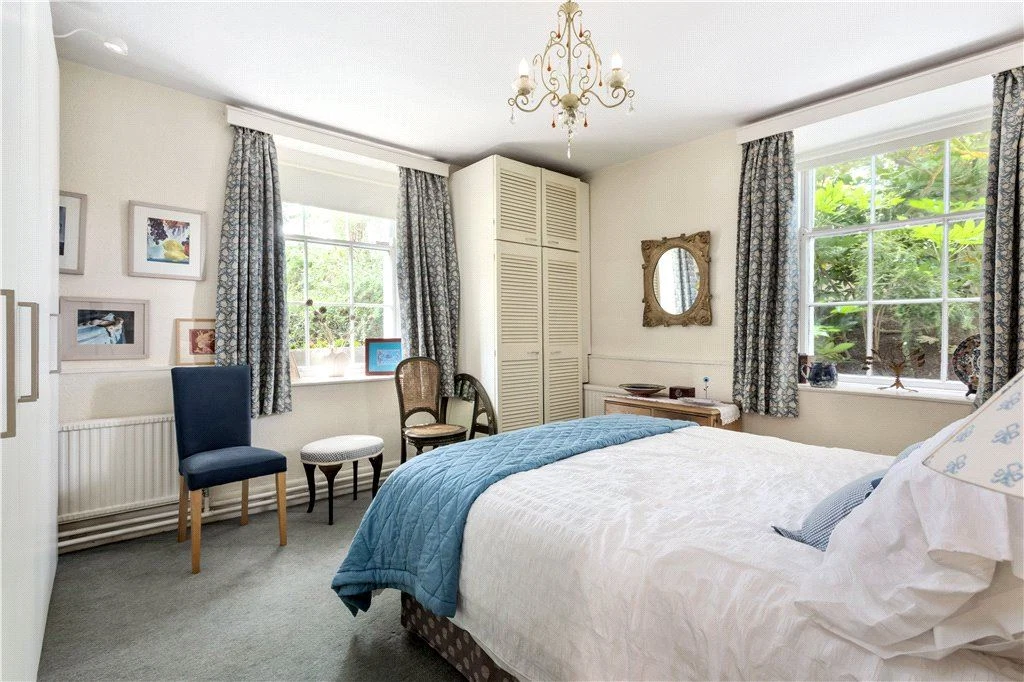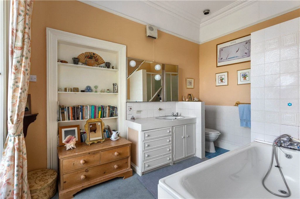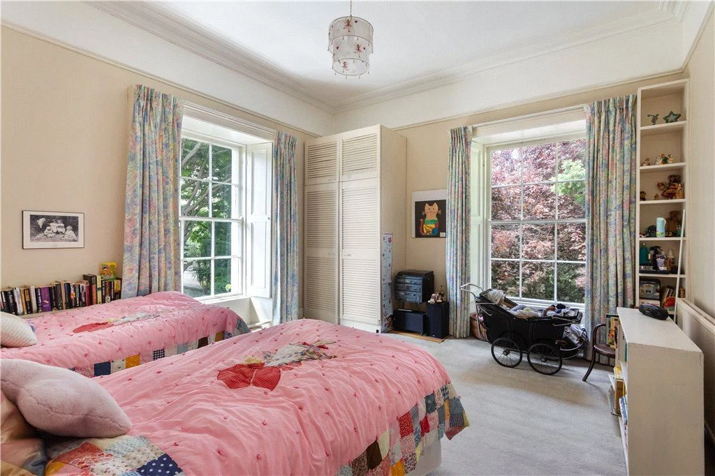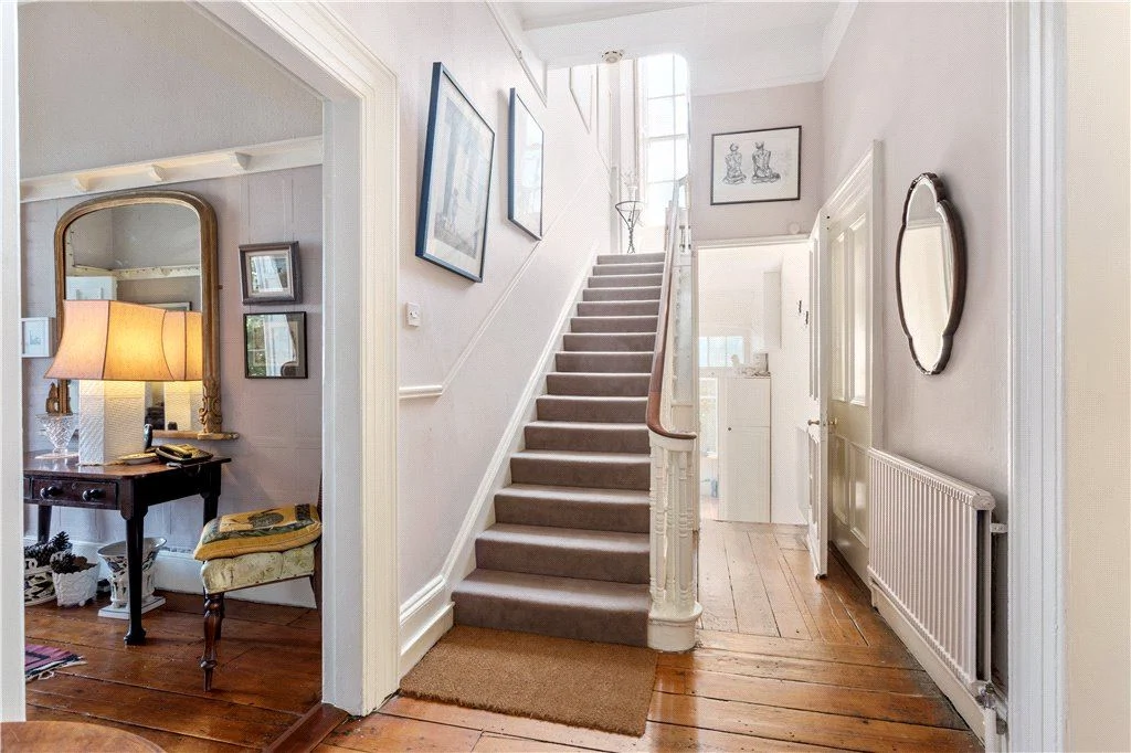 On the first floor are four bedrooms and the family bathrooms. The main bedroom has an ensuite, while all the bedrooms on this level have period features such as ceiling coving and window shutters.