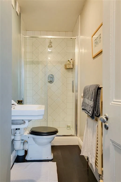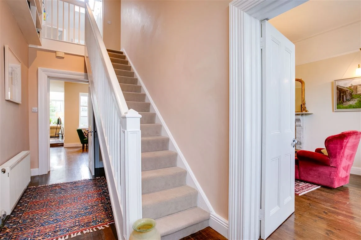 The main bedroom sits at the front of the house on the ground floor, and has its own ensuite, as well as built-in wardrobes. The further three bedrooms are upstairs, along with a family bathroom.