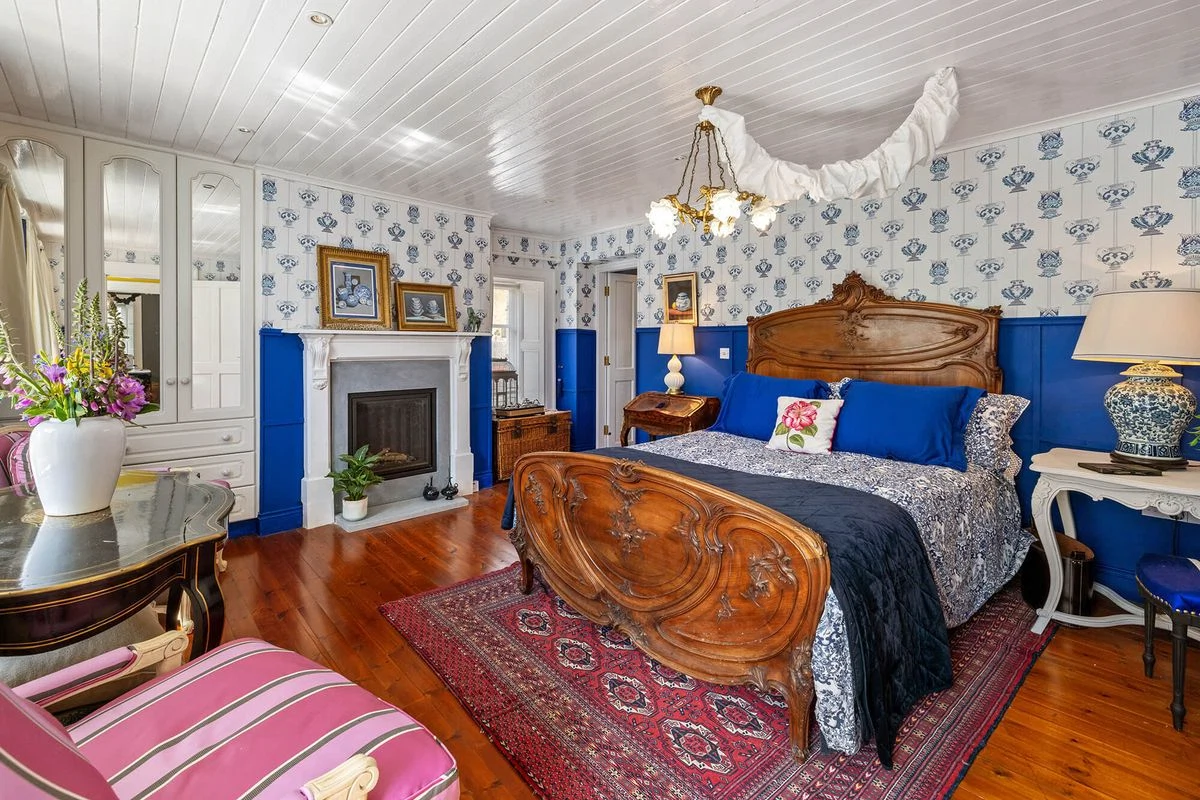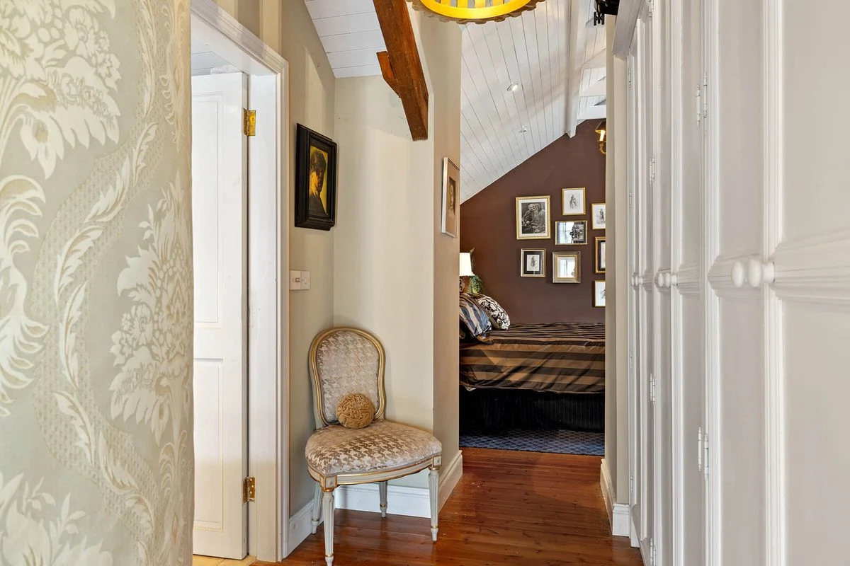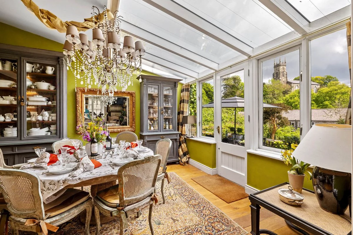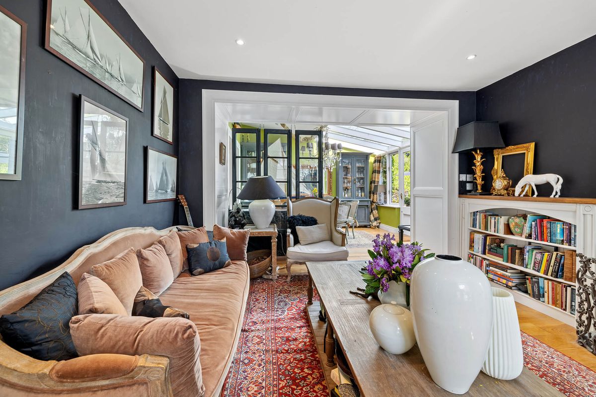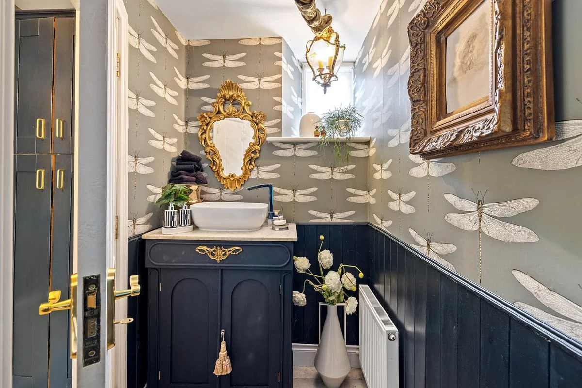 The interiors throughout this home are considered and add much to its character, with rich shades and patterned wallpaper used throughout.