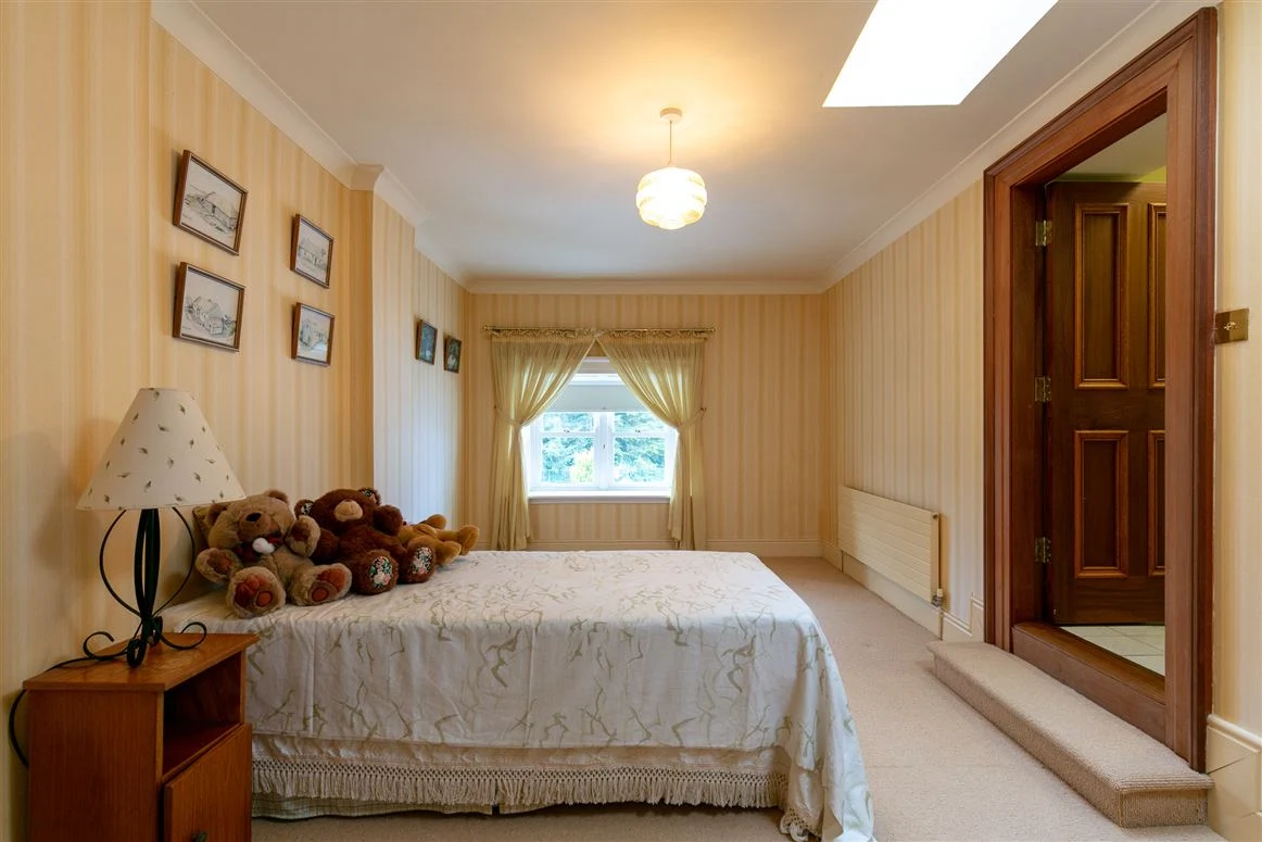 The main house itself has three generous storeys and retains many of its period features, but it doesn’t stop there. A pool complex with a gym and sauna, a gate lodge with two bedrooms, a mews, several outbuildings, four garages, and eight and a half acres of grounds and gardens.