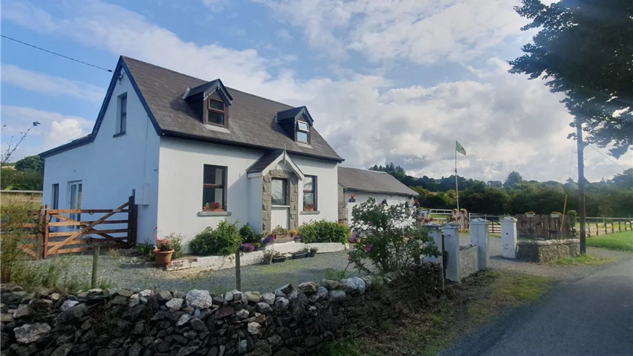 Located in Suaimhneas, Kilballyowen, just outside Aughrim Village, this Wicklow home is set on 1.14 acres with stables, a paddock, and a sand arena. Brought to the market by Raymond Gaffney & Sons Ltd., this four-bedroom, two-bathroom property is on the market for €375,000.
